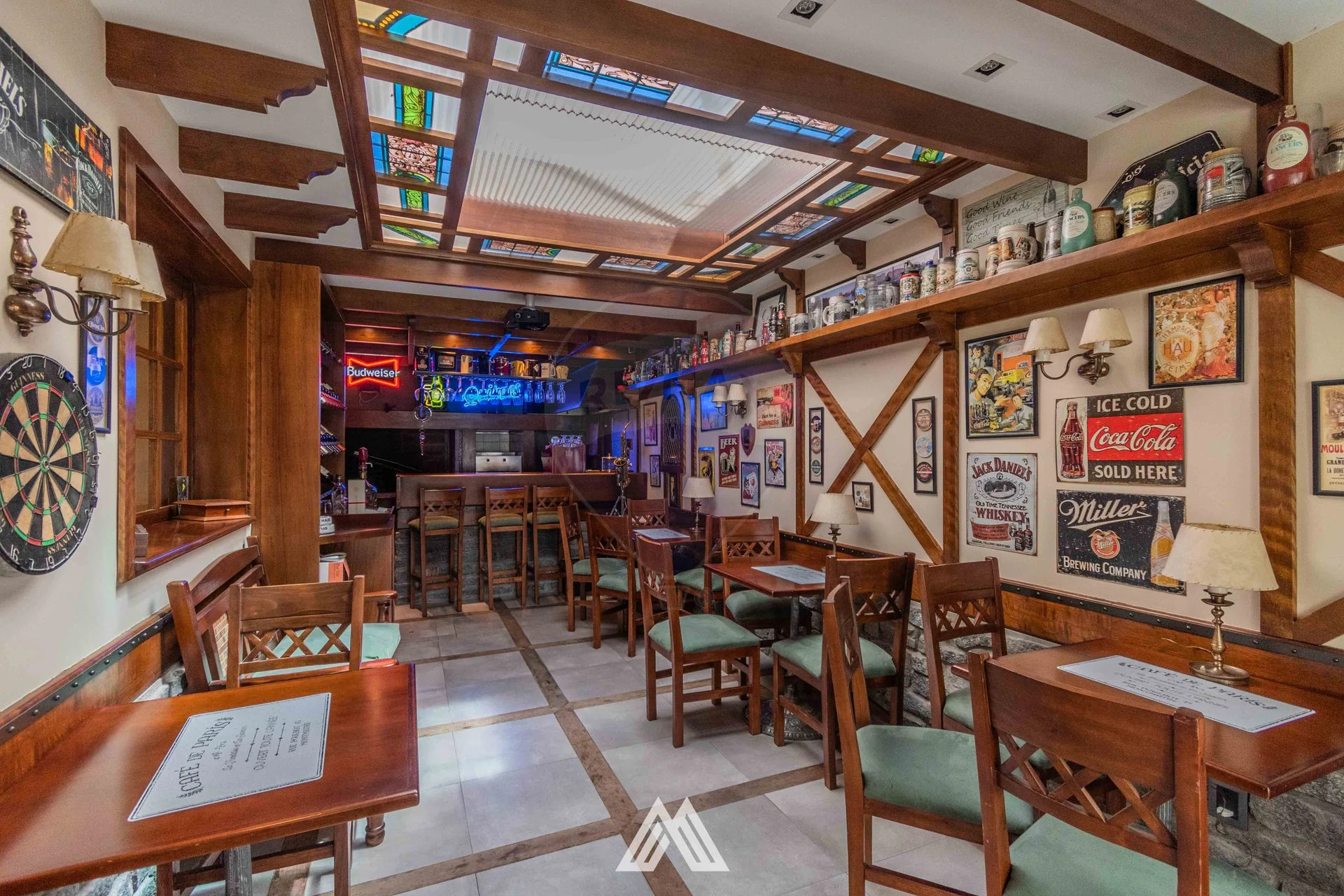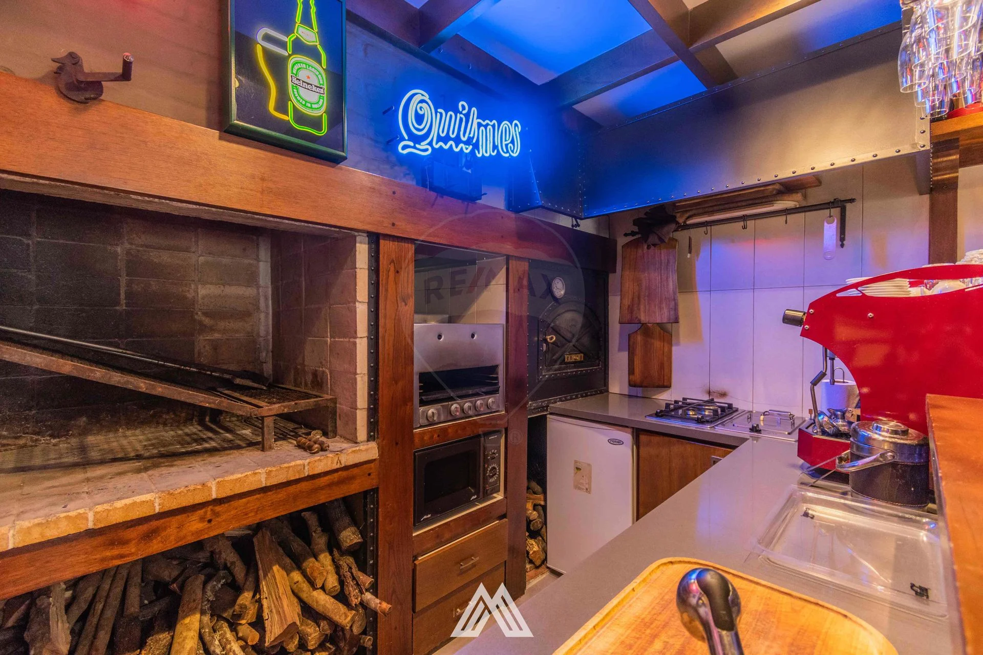 La barbacoa diseñada como pub inglés tiene doble acceso desde la cocina o desde el exterior. Cuenta con gran parrillero, horno de barro, chivetero, freidora todo empotrado con extracción doble de gran capacidad como la requerida para gastronomía. Area de pérgola exterior muy disfrutable que se conecta con la piscina y el jardín.