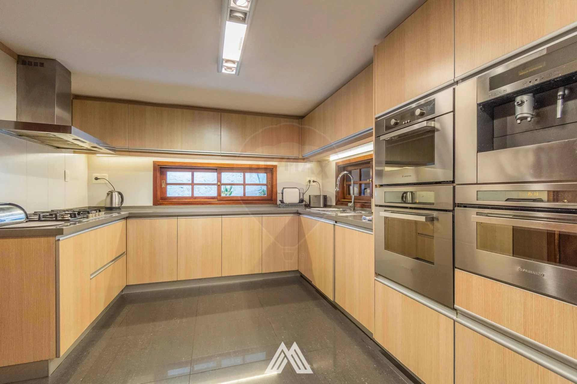 Cocina súper moderna con muebles áereos y bajo mesada en silestone. Excelente equipamiento con dos hornos, microondas, lavavajillas, dos heladeras de origen italiano todo empotrado.