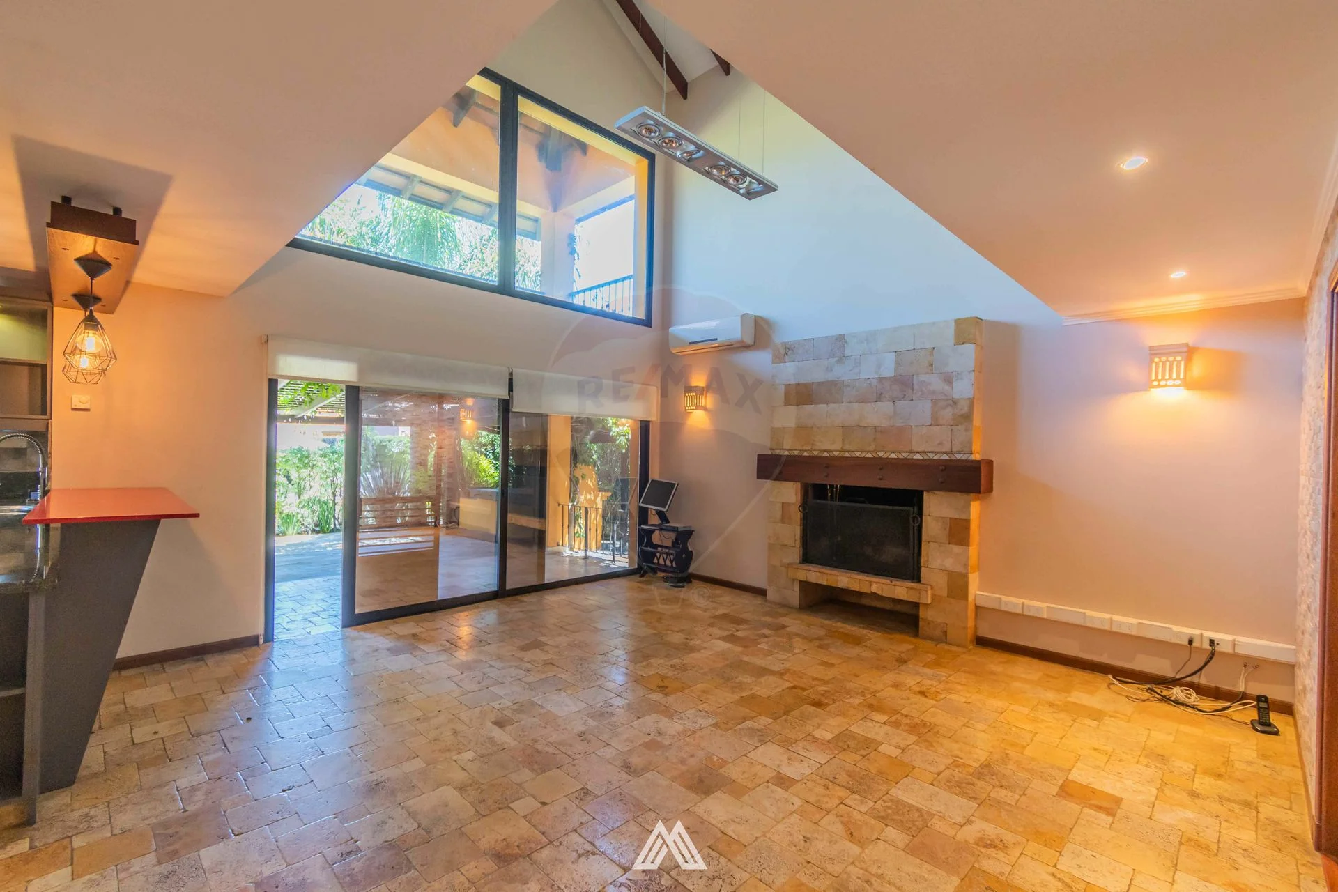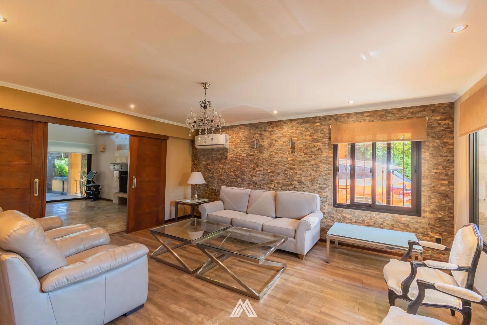 Estar con doble altura con muy buena iluminación ya que tiene grandes ventanales hacia la pergola y el jardín.