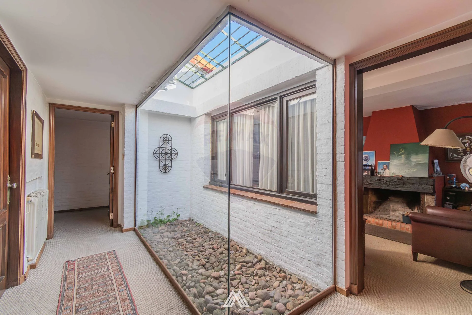 Pasillo a la parte íntima de la casa con mucho lugar de guardado y patio interno vidriado que da luz natural.