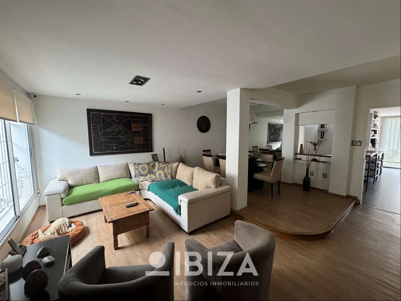 380m2 distribuidos entre dos casas, jardín, patio y cocheras. Reja perimetral y cochera techada con capacidad para 3 autos.