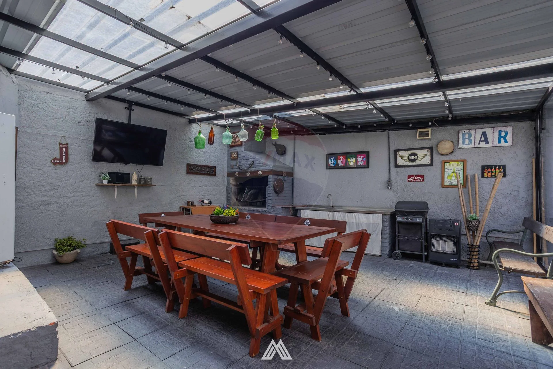 El patio posterior incluye una barbacoa cerrada, ideal para reuniones familiares o encuentros sociales. Orientación noreste permite óptima luminosidad durante el día.