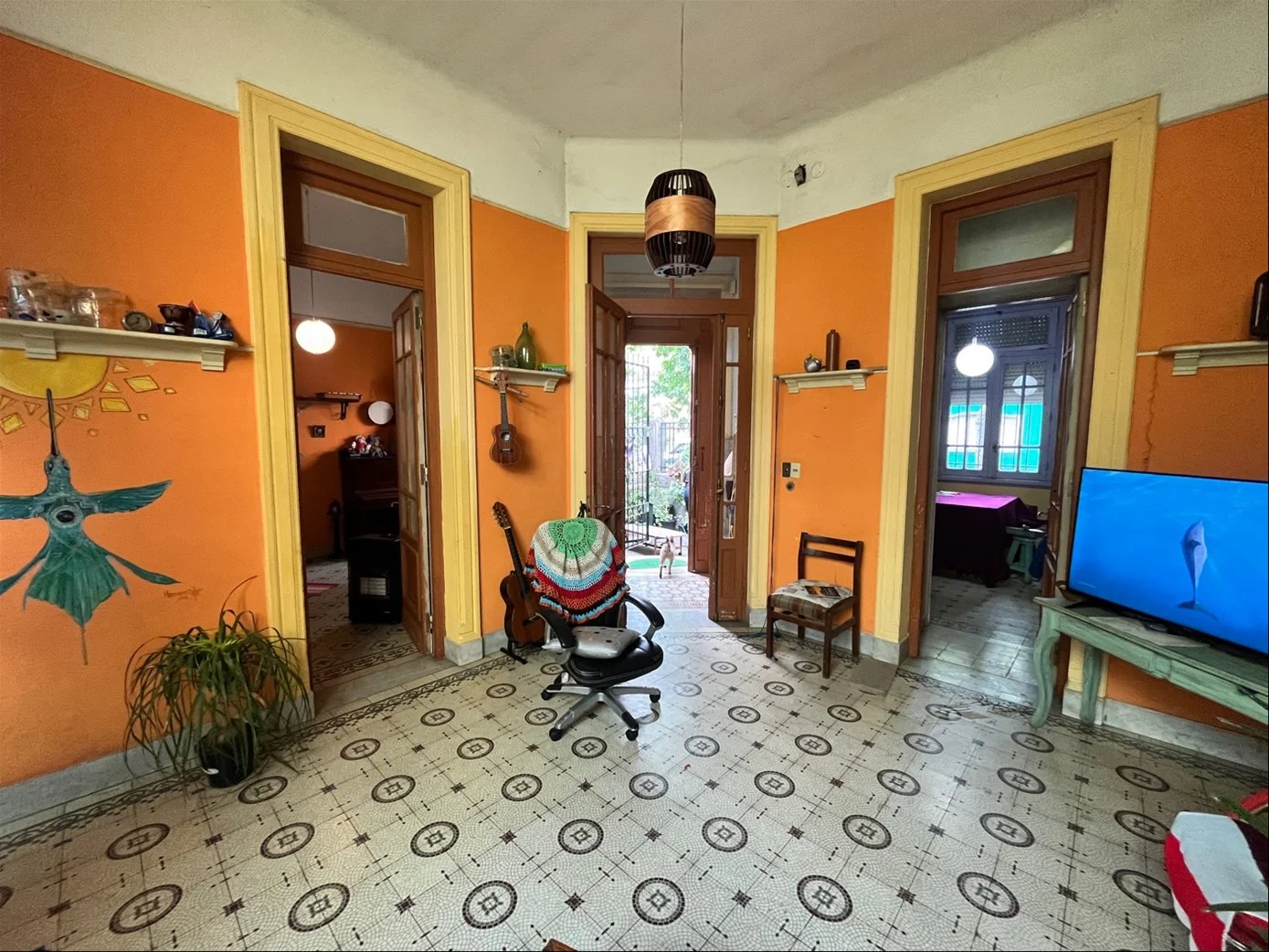 Esta propiedad de dos plantas cuenta con retiro de fachada con pequeño jardín, hall de recepción, living comedor con hermosa estufa a leña de hierro (en funcionamiento), vitraux original hacia el patio central aportando mucha luz natural al ambiente. Cuatro dormitorios en planta baja, dos de ellos al frente con amplias ventanas a la calle, rejas, persianas y placares; tercer dormitorio interior con vista y luz a vitraux en hall distribuidor y el cuarto dormitorio orientado al patio central, este ultimo con hermoso mueble empotrado de caoba. Hall distribuidor con luz natural a través de amplio vitraux que da al patio central de la casa, un baño completo a reciclar, cocina amplia con ventana al patio trasero, despensa contigua a la cocina, ideal comedor diario y salida a patio.