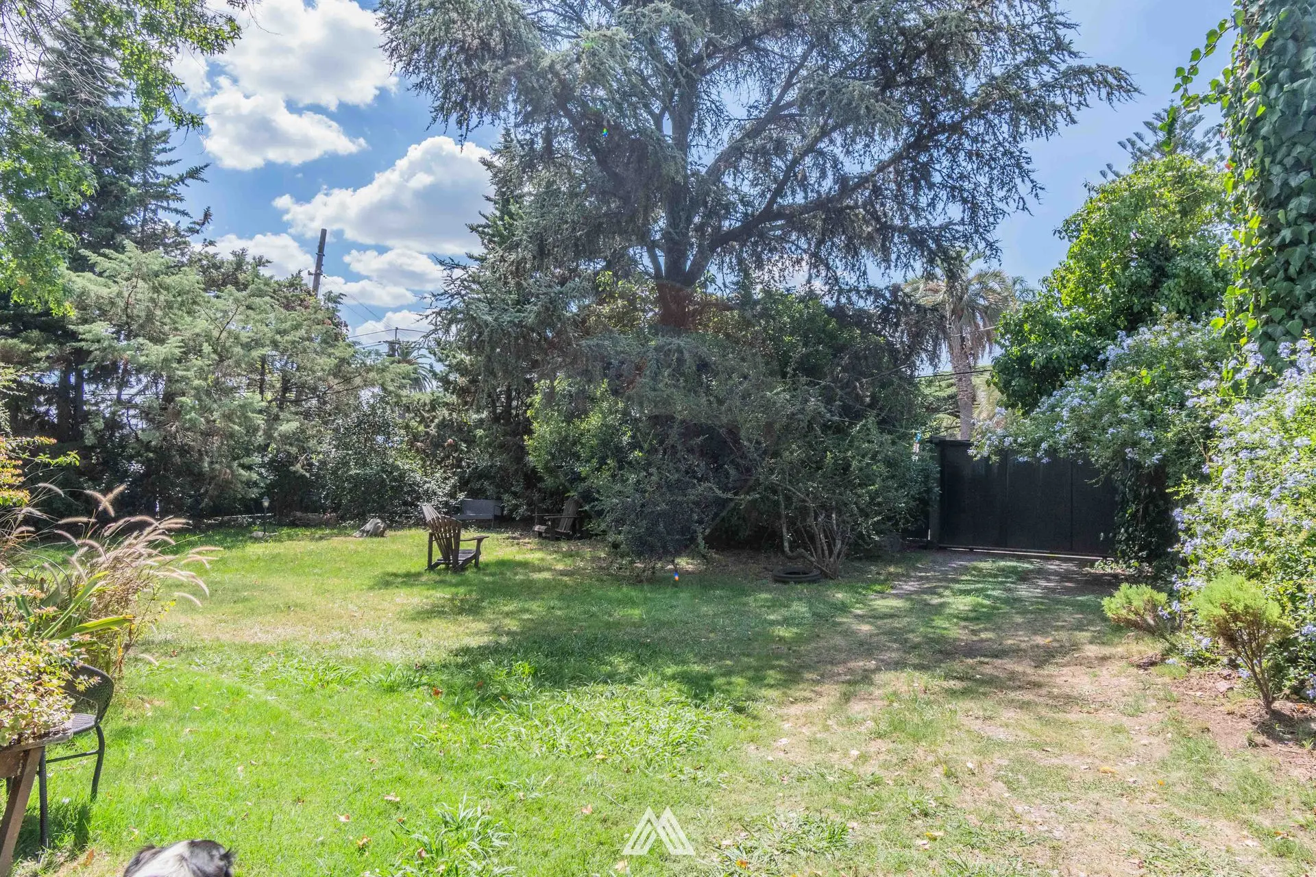 El jardín que rodea la casa, está iluminado, y con riego.