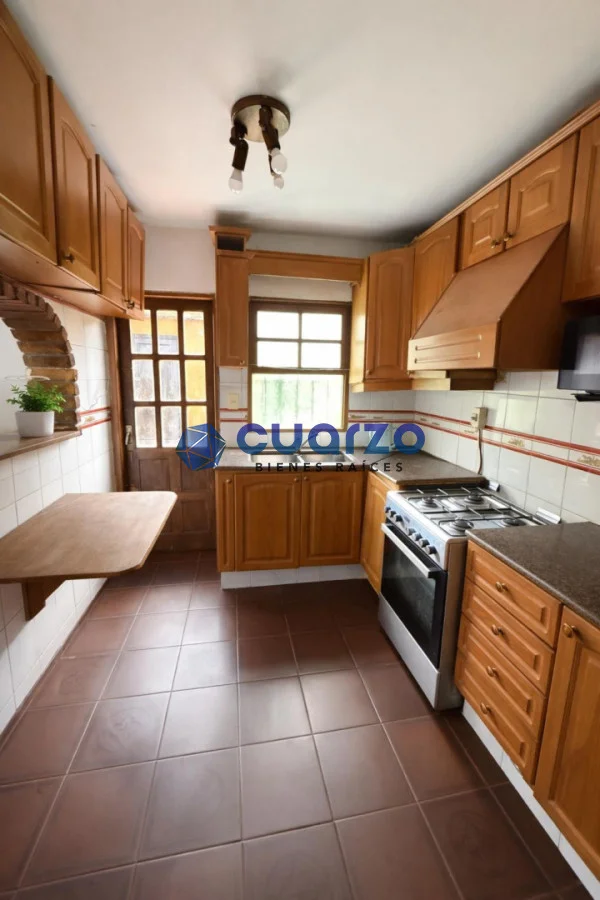 Jardín con parrillero, depósito y acceso a cochera techada con lugar para 2 autos.