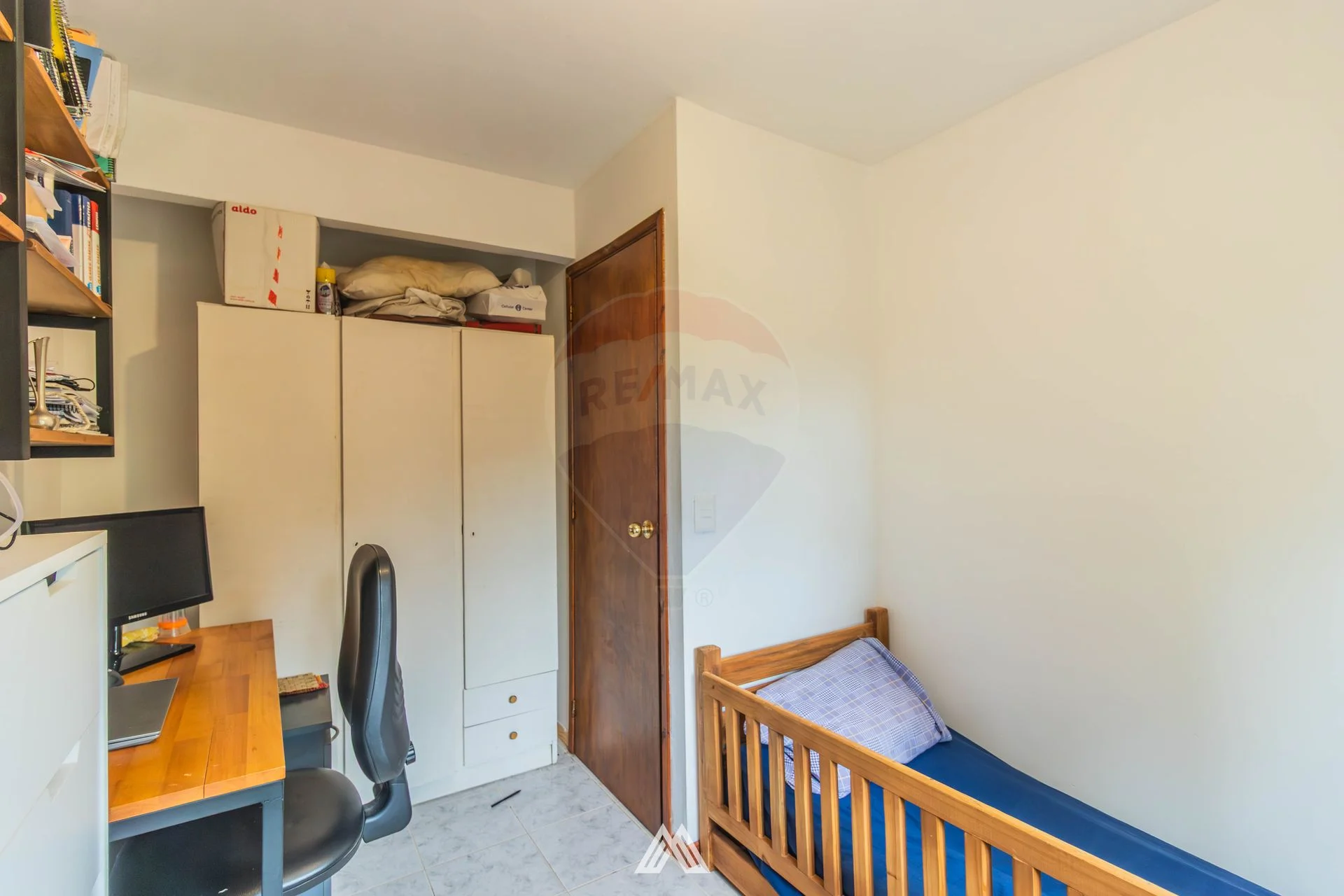 El dormitorio secundario cuenta con la chimenea de calefacción pasante.