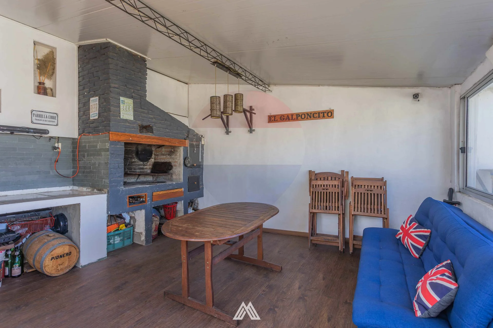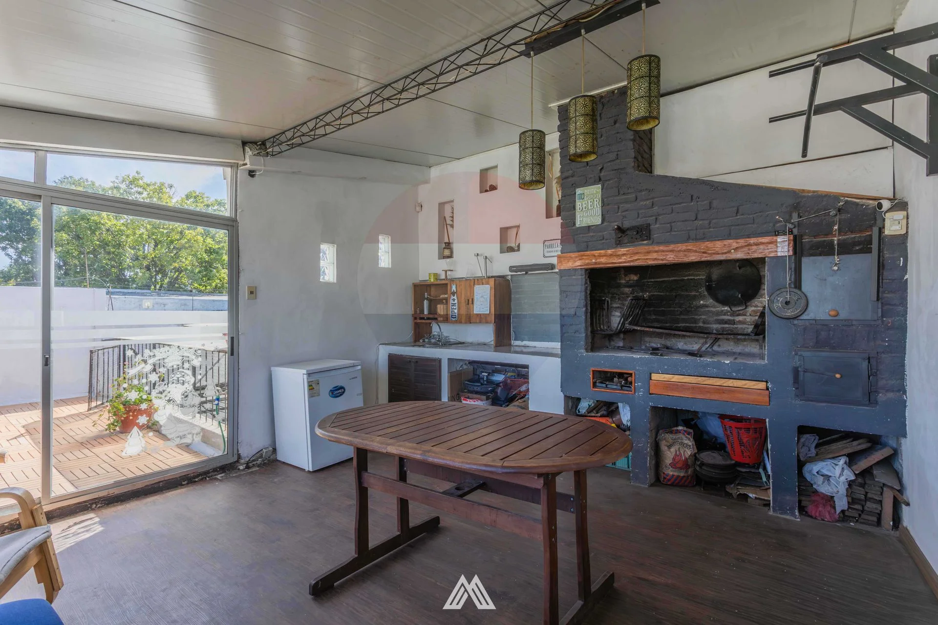 Barbacoa cerrada (con parrillero y horno a leña) y jardín en planta alta.