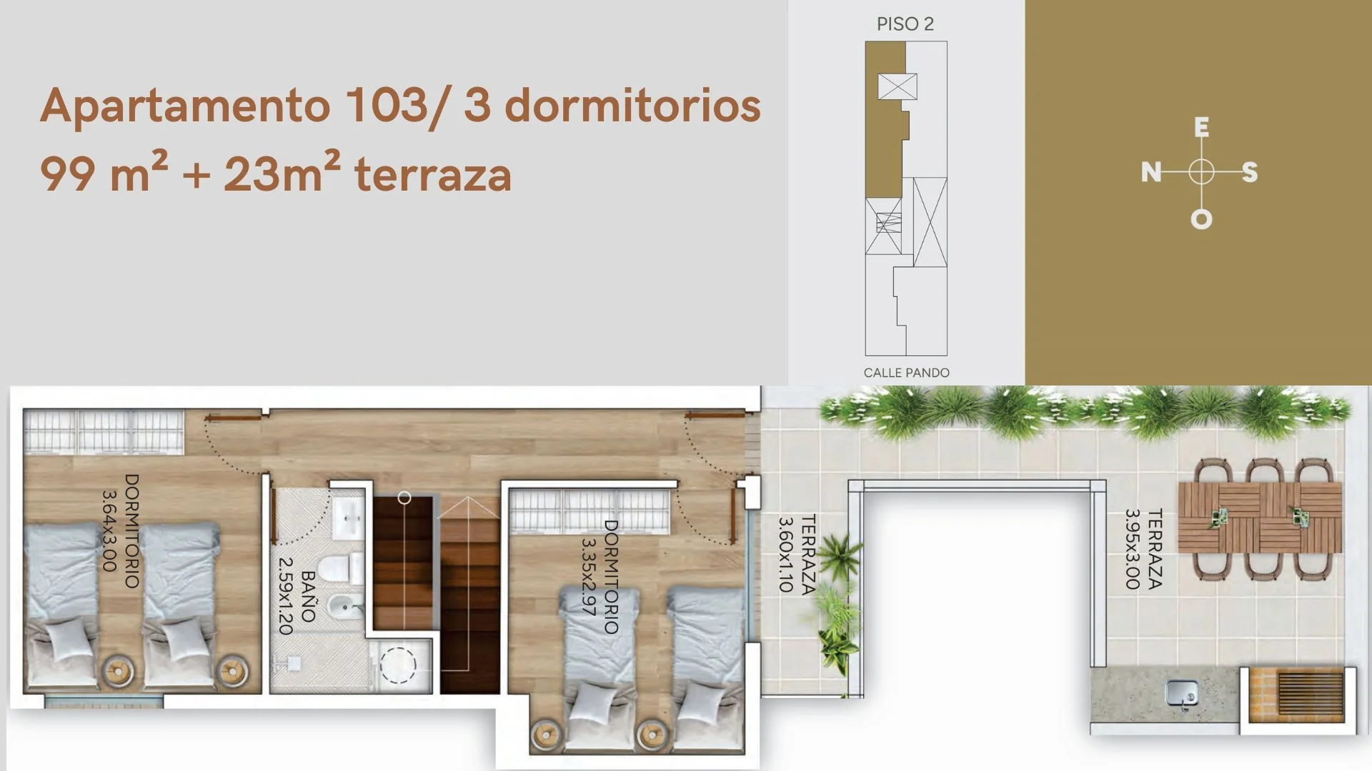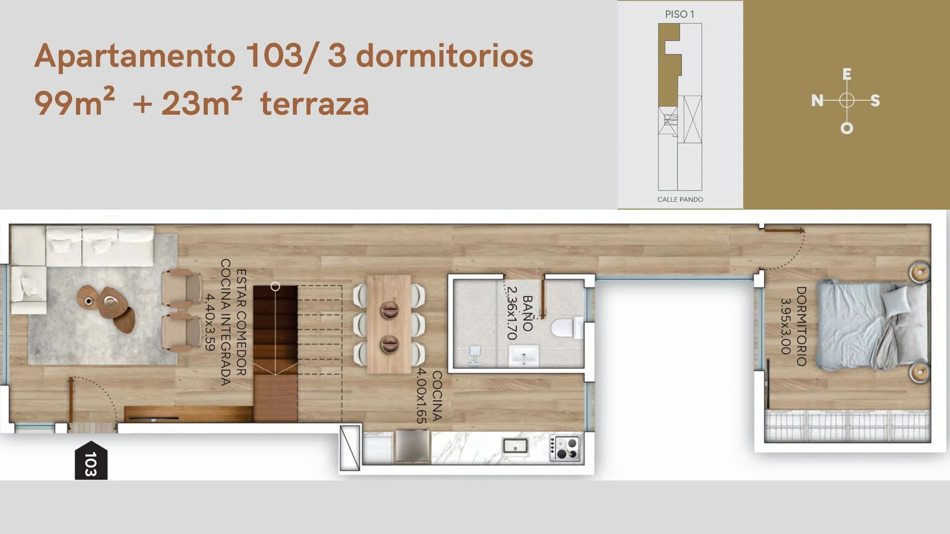 Unidad 103 en planta alta, en un condominio de 8 unidades independientes, sin gastos comunes.