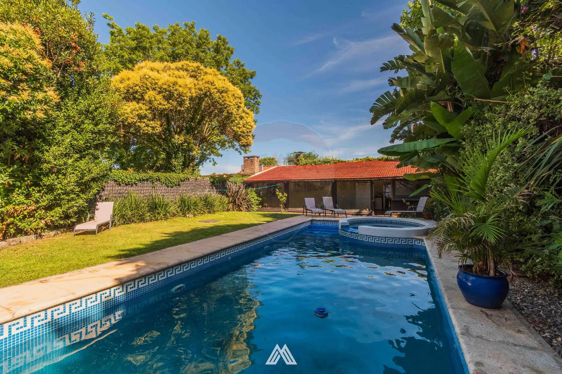 Precioso jardín muy disfrutable con piscina climatizada.
