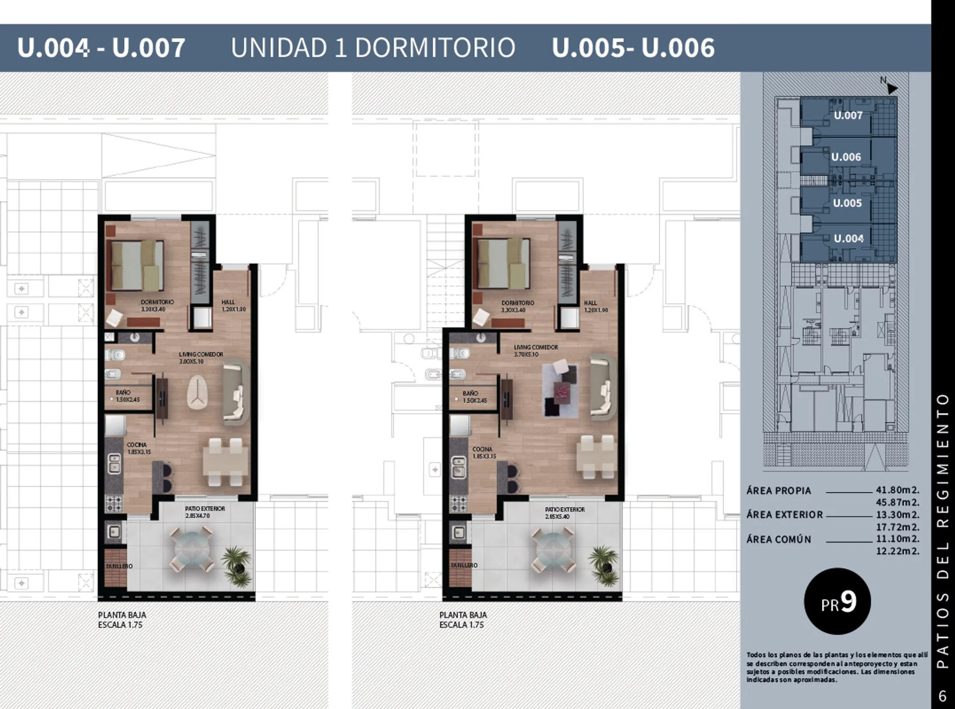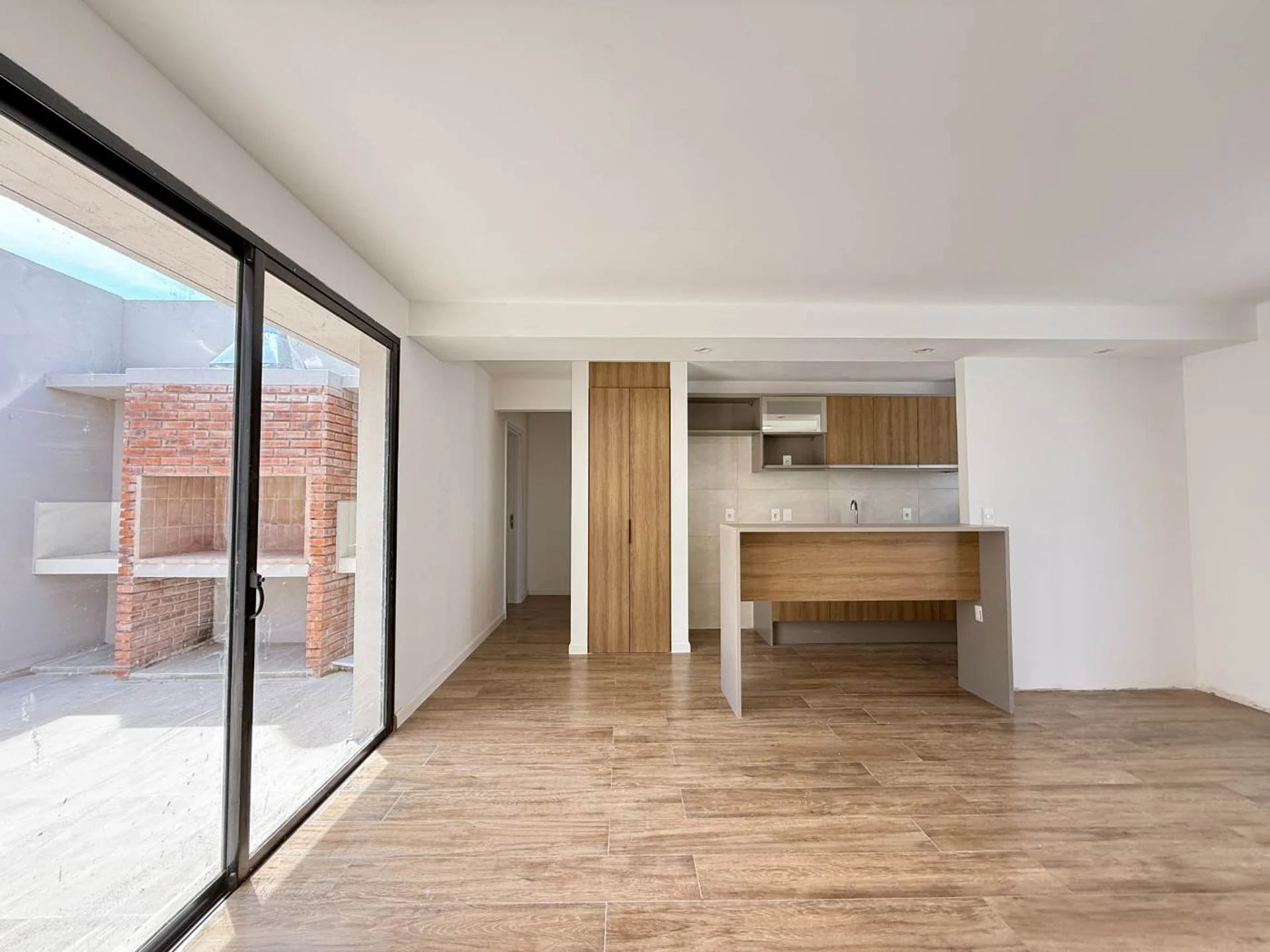 Cuenta con 43 m2 interiores de vivienda en una planta, con doble orientación, excelente ventilación e iluminación natural, retiro al frente con jardín.