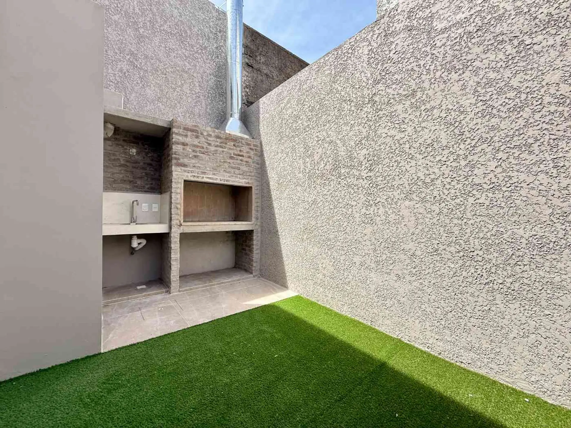 Patio de 12 m2 con parrillero, orientación este recibiendo toda la luz del día, proporcionando más amplitud, iluminación y ventilación natural a la propiedad.