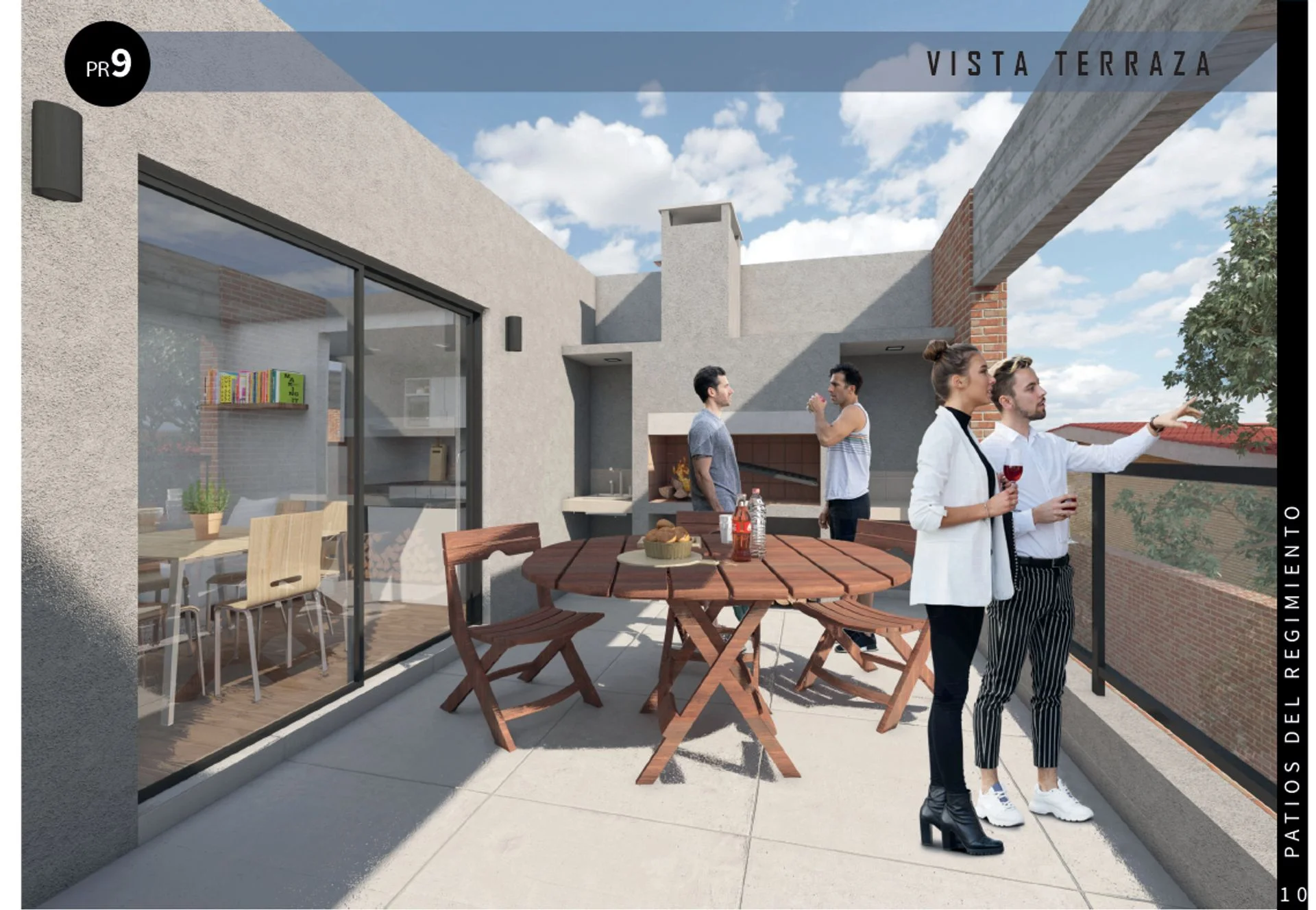 Patios y terrazas exclusivas con parrilleros, quemadores incluidos.