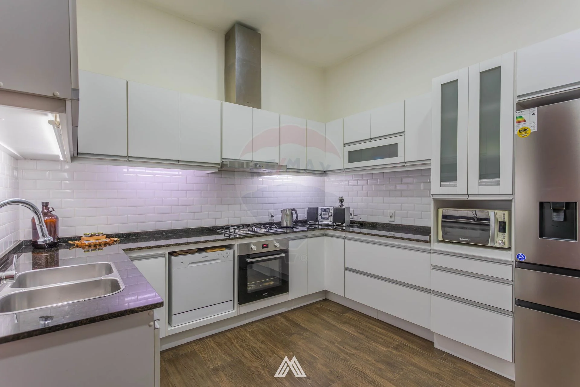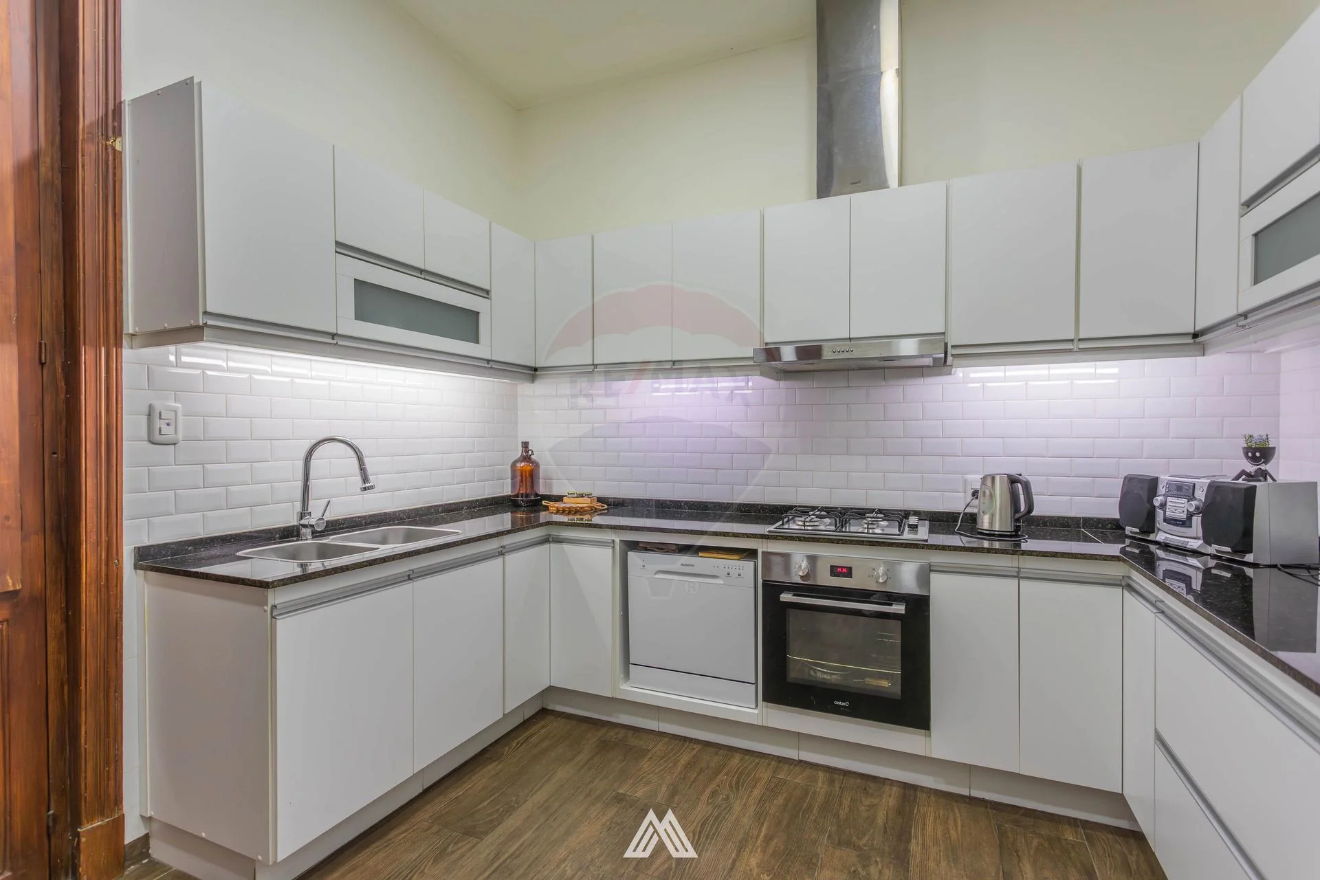 - Cocina reciclada, con espacios de guardado, cocina y horno empotrado.
