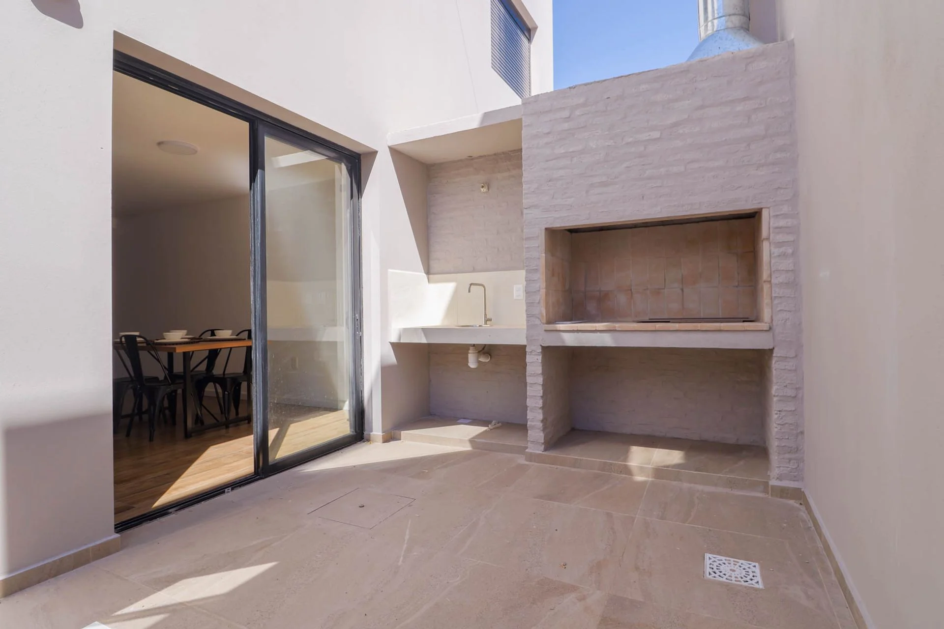 Patio con parrillero, orientación norte recibiendo toda la luz del día, proporcionando más amplitud, iluminación y ventilación natural a la propiedad.