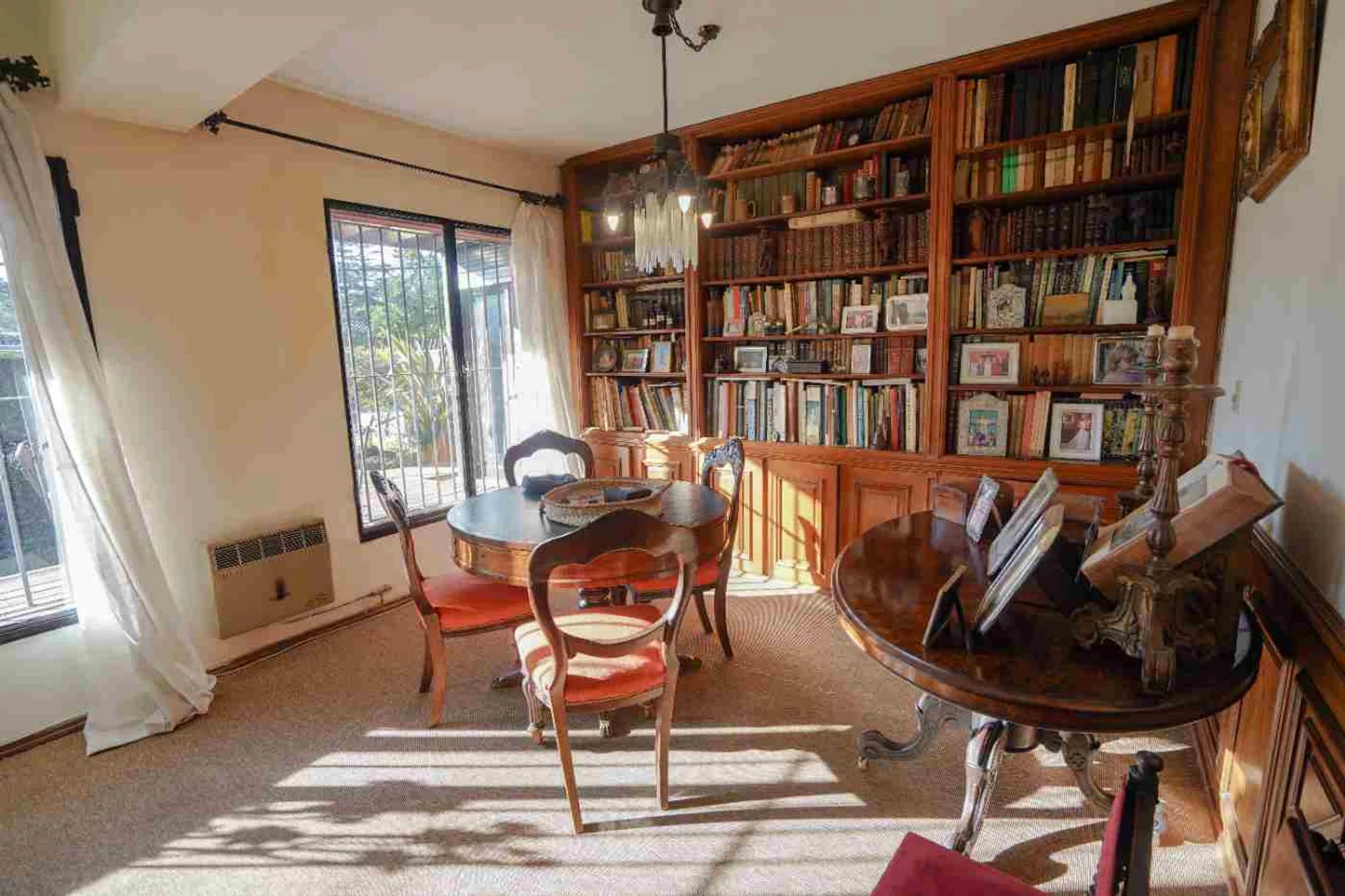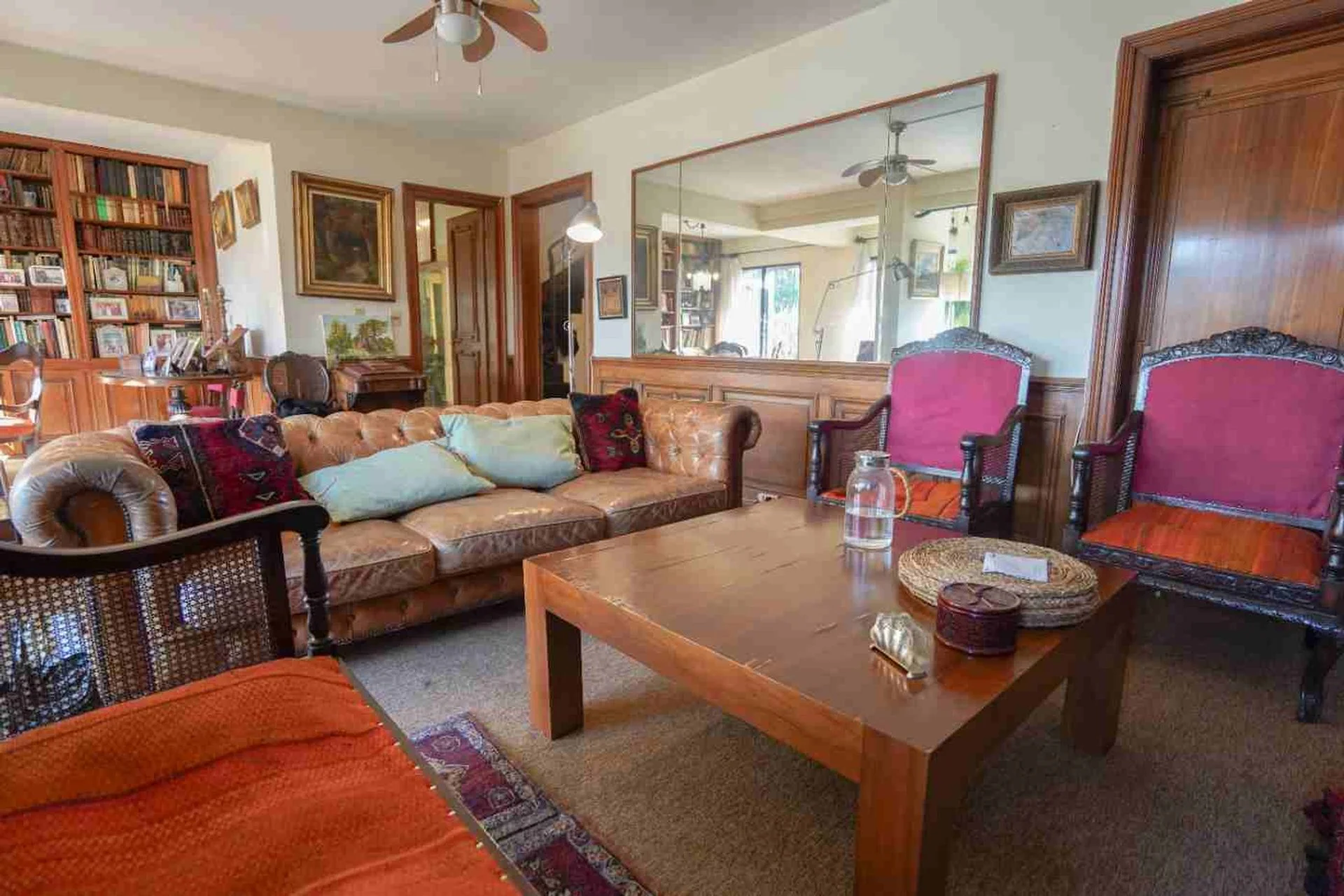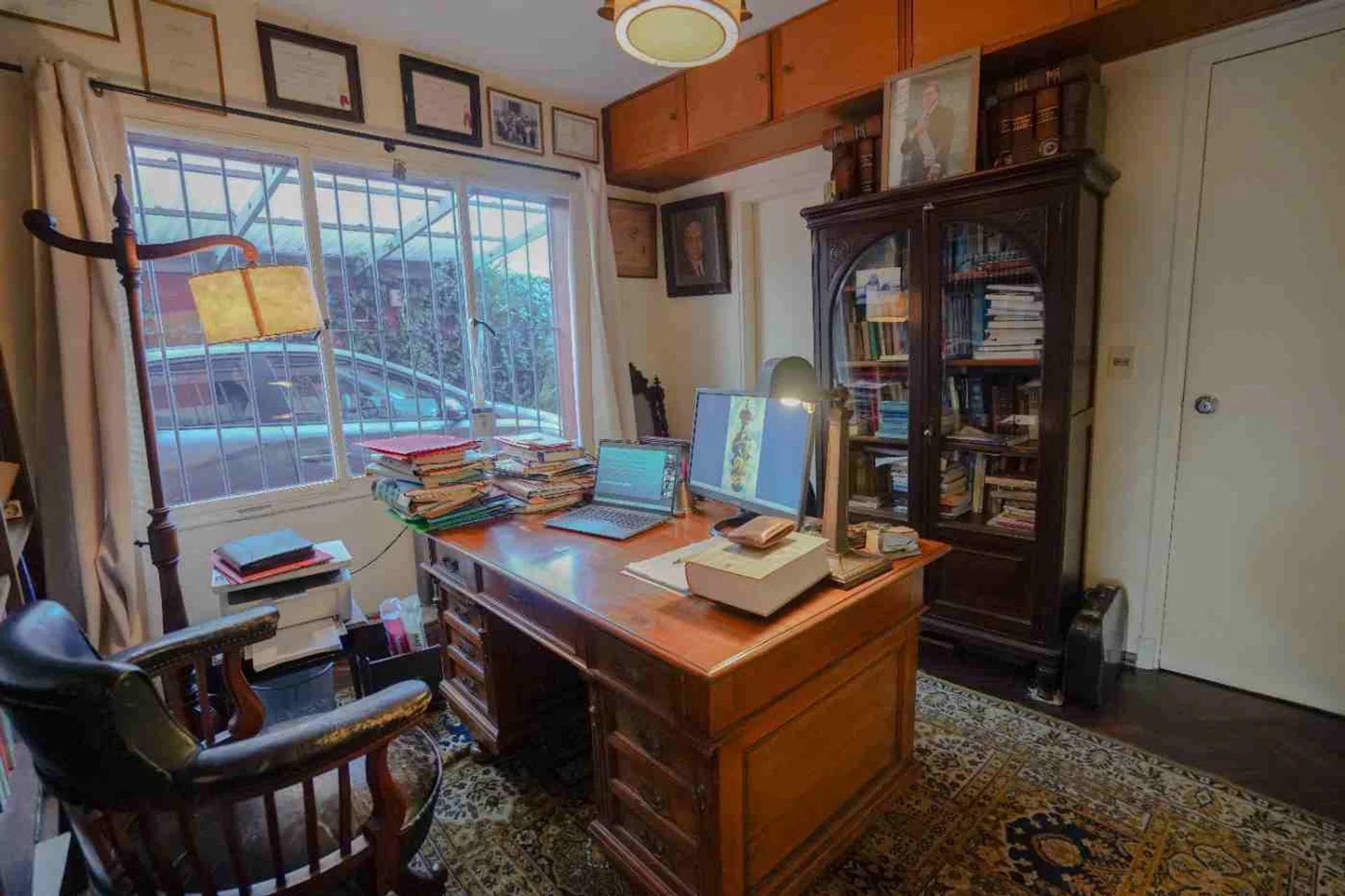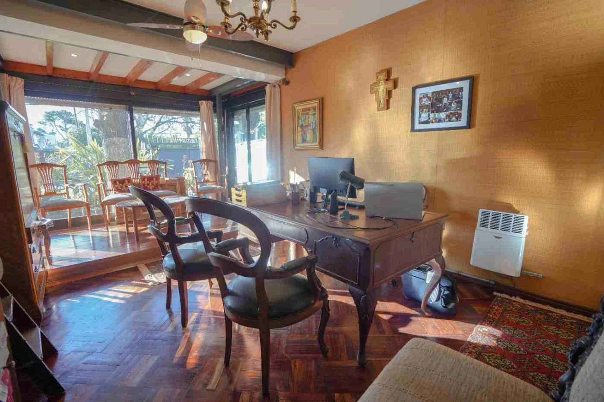 En planta principal, un elegante hall de recepción conducen a un living comedor con gran estufa a leña, con ventanales que integran el interior con el verde del jardín. Dos amplias habitaciones que actualmente funcionan como escritorios, estar con estufa a leña y una cocina definida de gran capacidad,