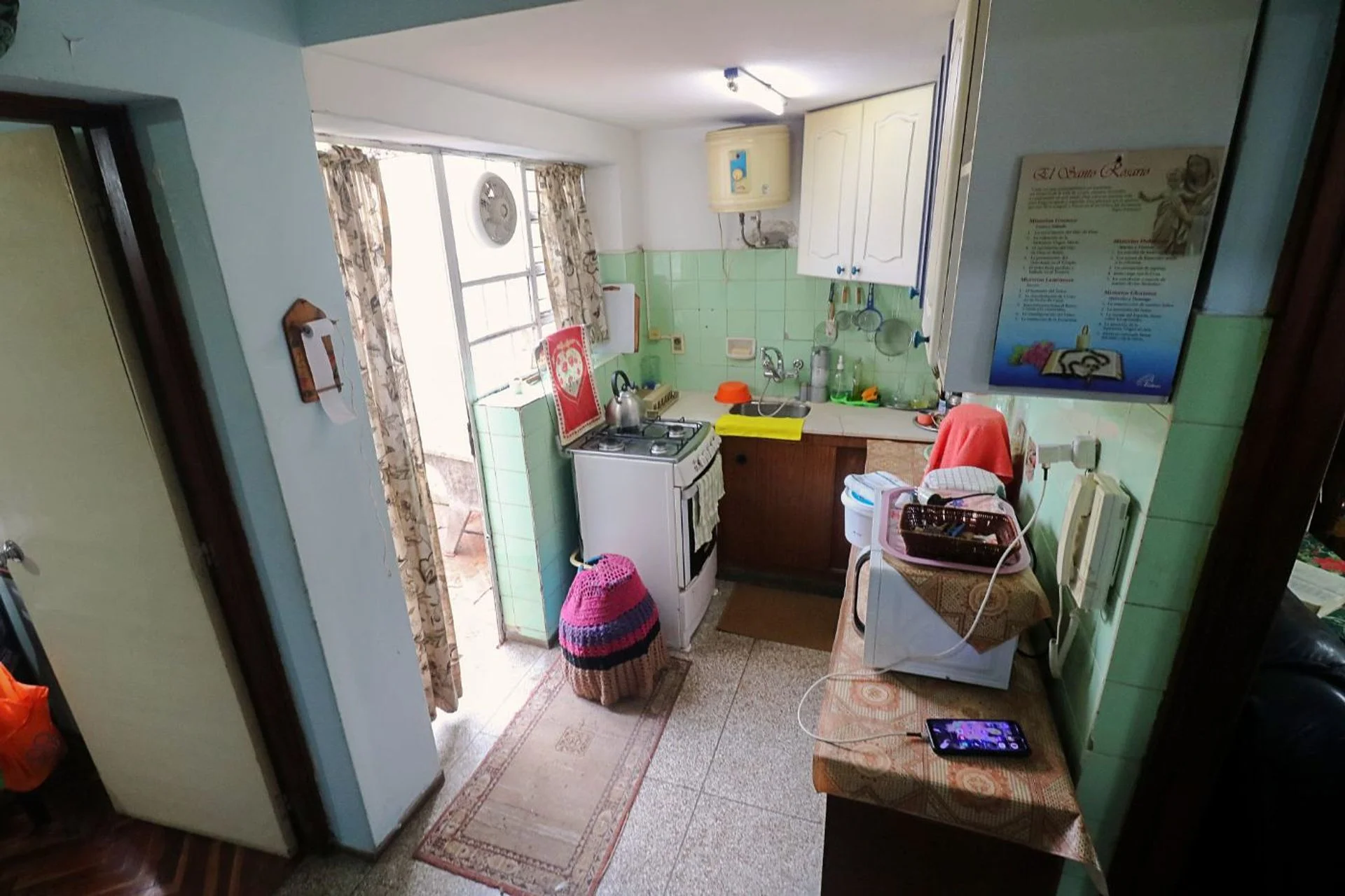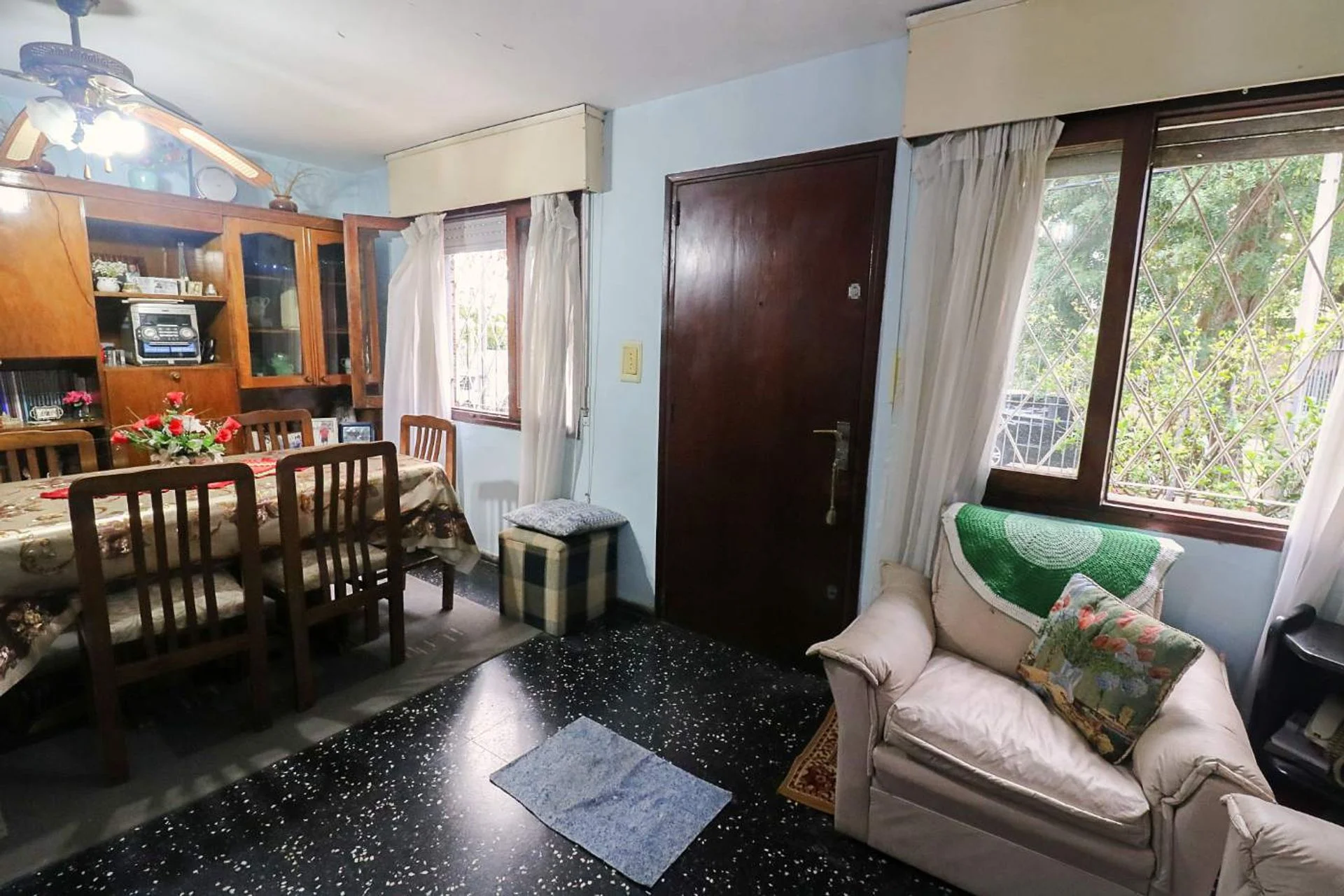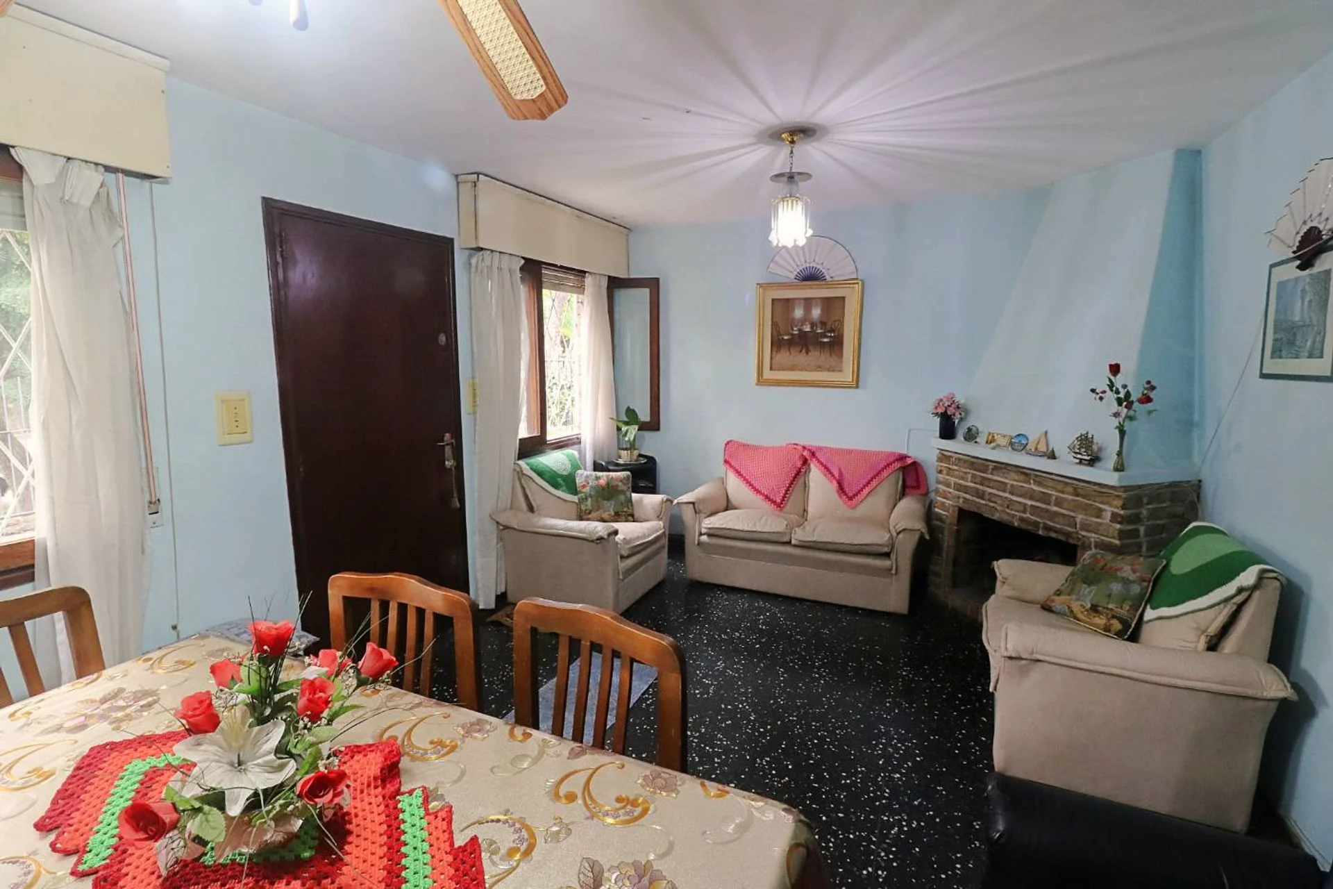 En plata baja nos encontramos con un cómodo living comedor con estufa a leña y ventanas hacia el frente. Este se comunica con la cocina, pequeña pero funcional, que tiene un espacio de guardado debajo de la escalera, y salida al patio trasero.