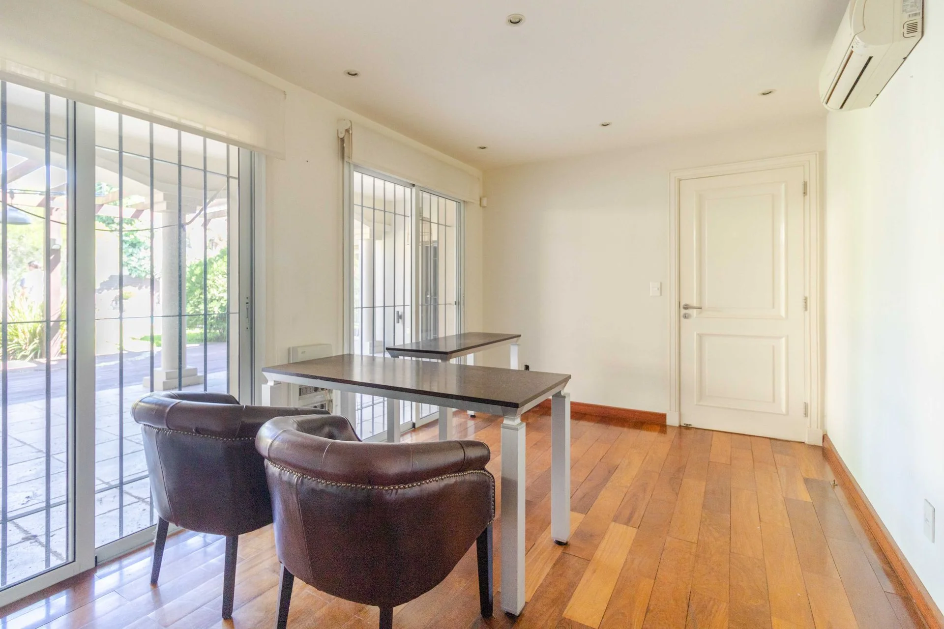 En el exterior tenemos un hermosos jardin con paisajismo y una piscina climatizada que se pueden disfrutar desde la galeria techada.