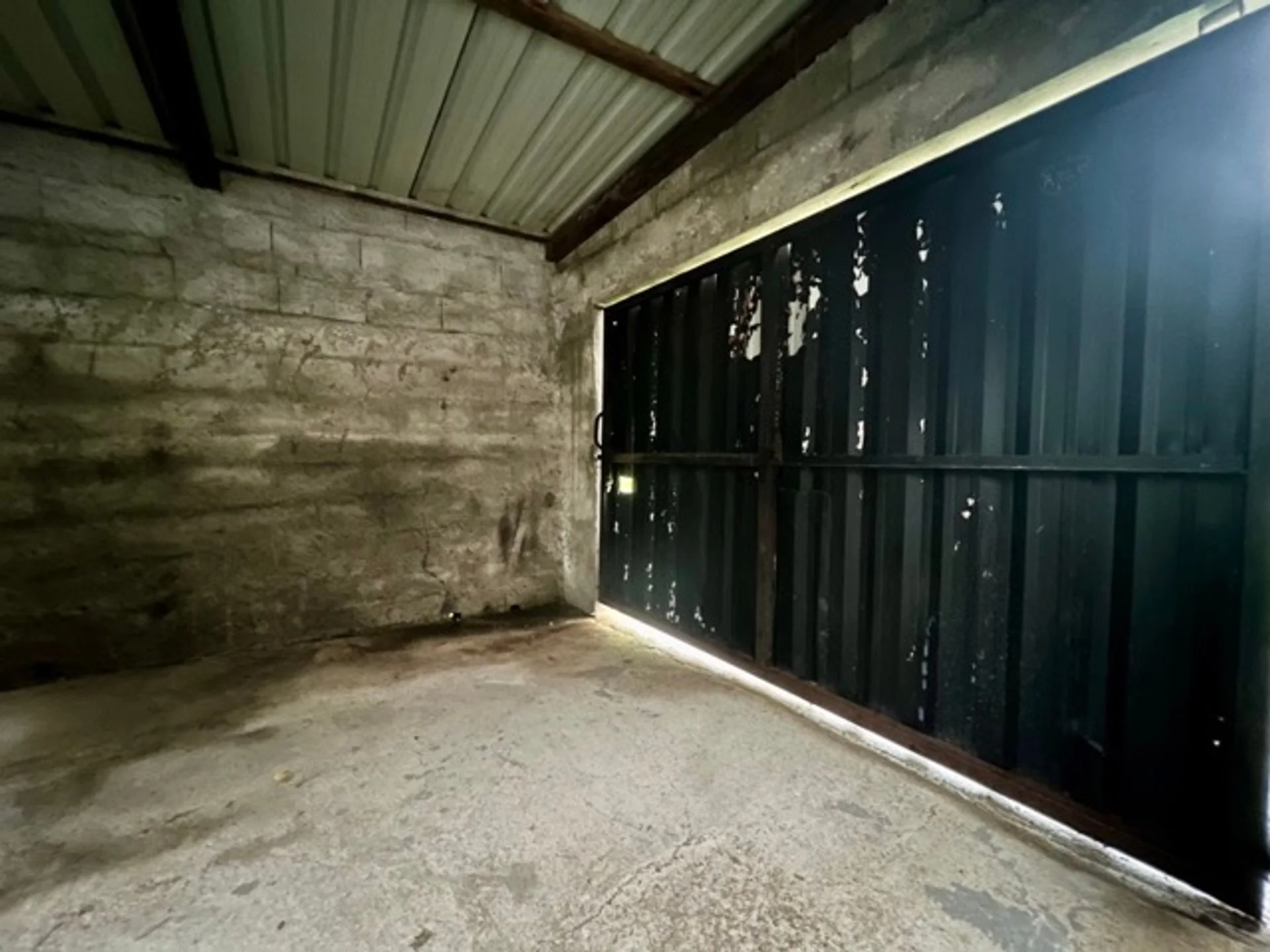 Garage para un auto, con techo de chapa nuevo y puerta lateral para salir directo al pasillo de la casa.