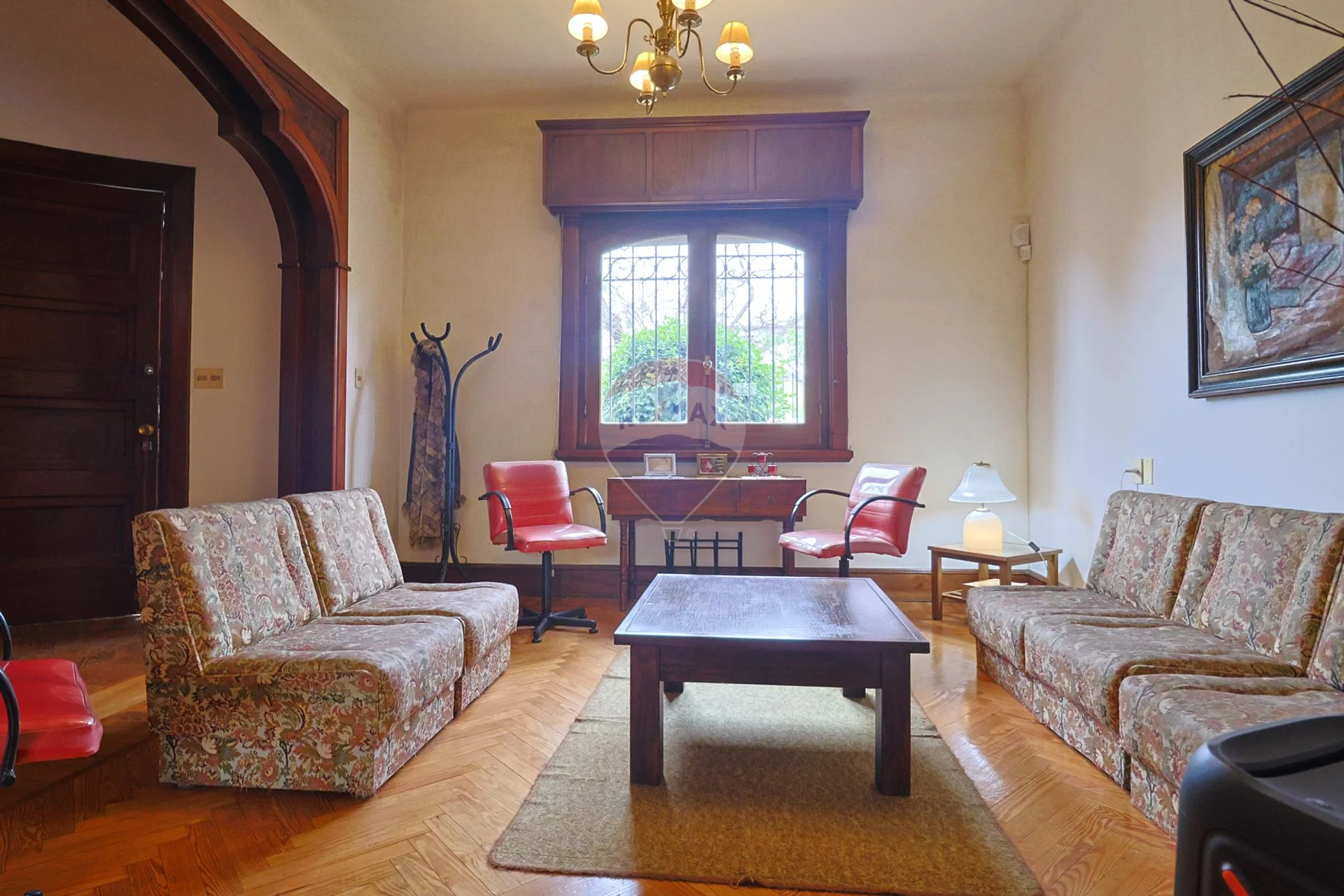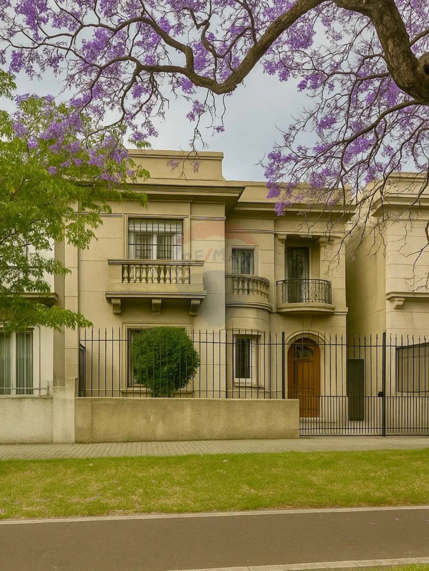 La casa mantiene el encanto clásico del Prado: balcones con balaustradas, rejas trabajadas y un frente verde en un entorno arbolado.