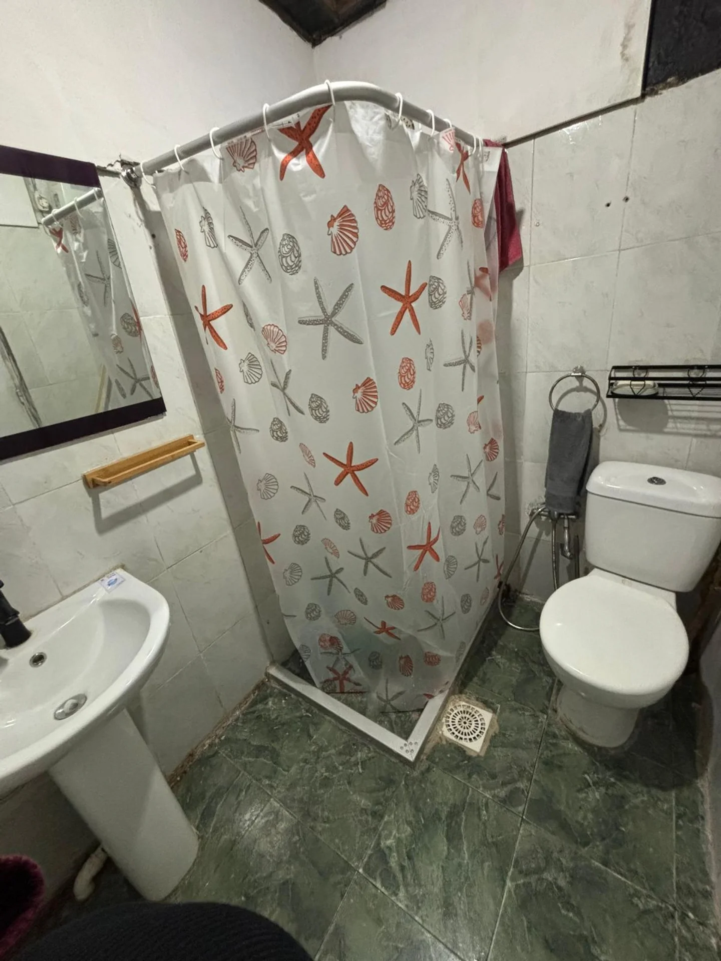 Hacia el final del pasillo y entre cocina y dormitorio encontramos el baño revestido y con ducha con mampara.