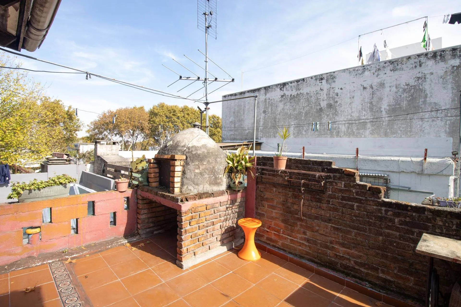 La amplia terraza es muy disfrutable e incluye un horno de barro, ideal para reuniones y momentos al aire libre.