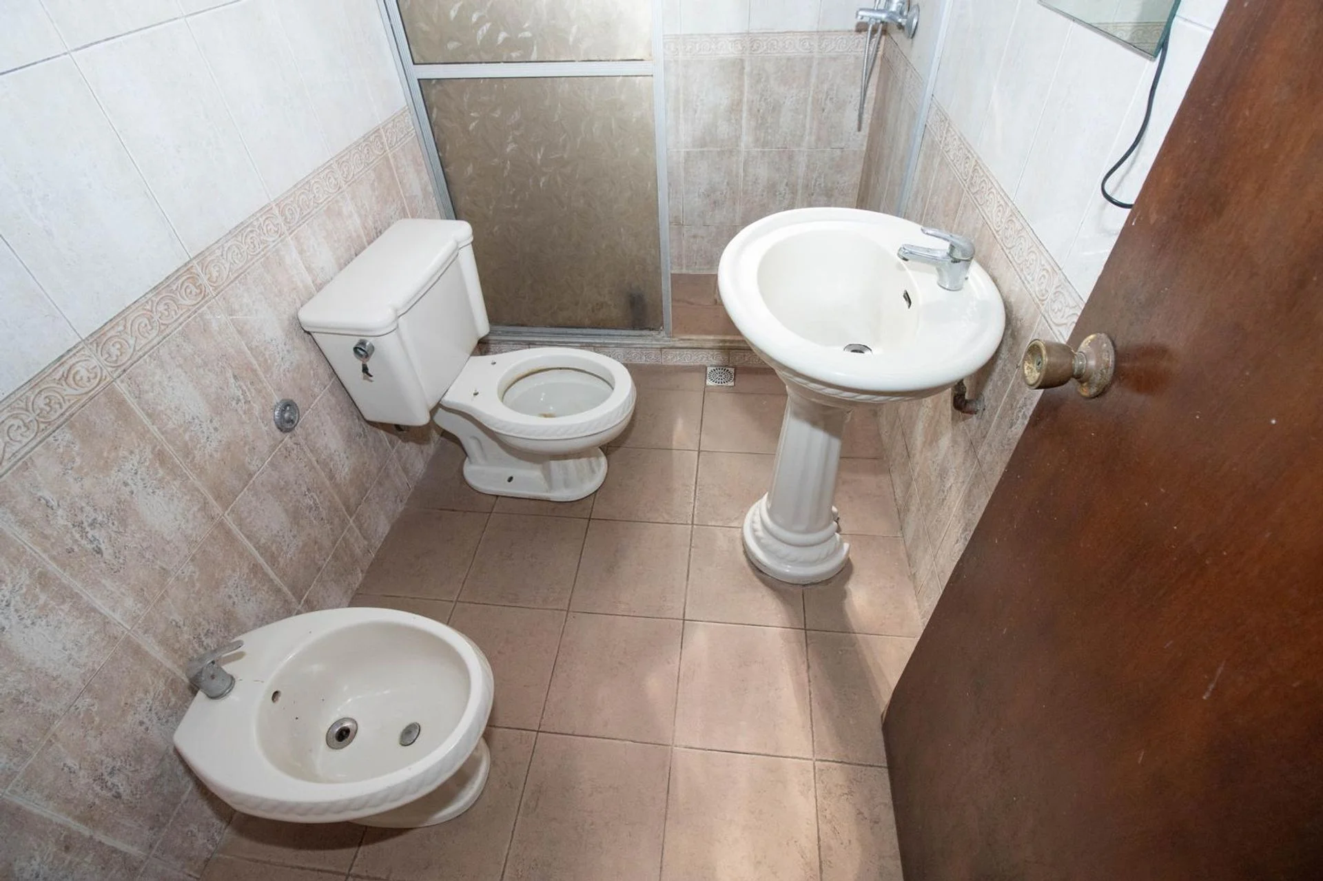 El baño es completo y cuenta con mampara.