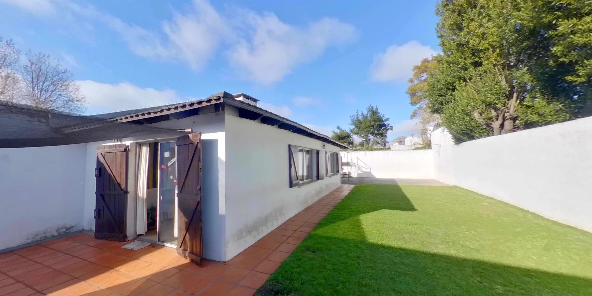 Cuenta con jardín y muro perimetral, entrada lateral independiente a hermoso fondo verde con muros altos dando seguridad a la propiedad.