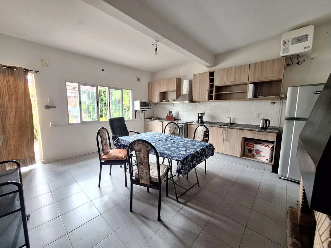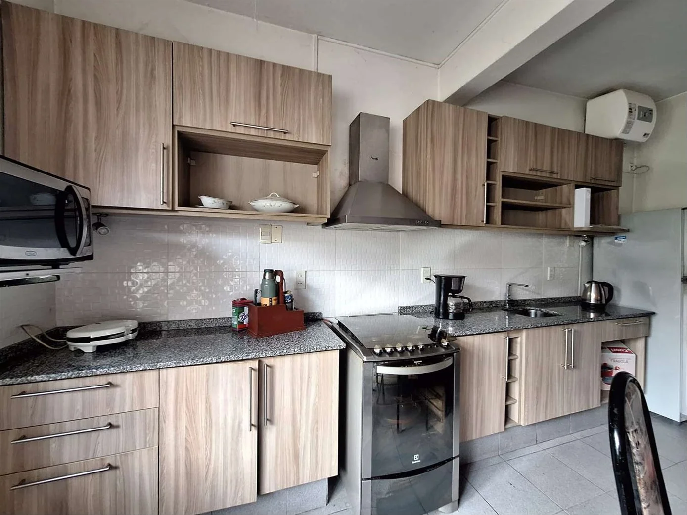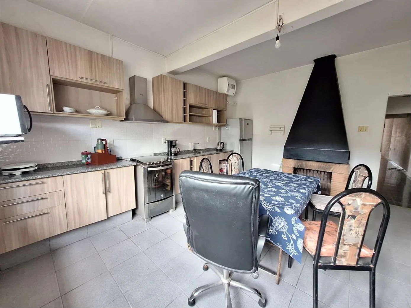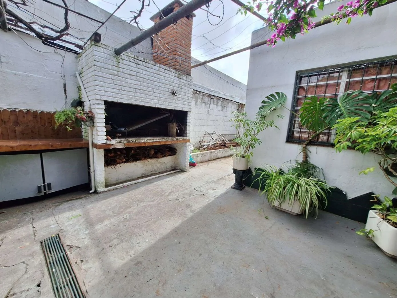 Salida a fondo desde la cocina, patio con parrillero y acceso al apartamento