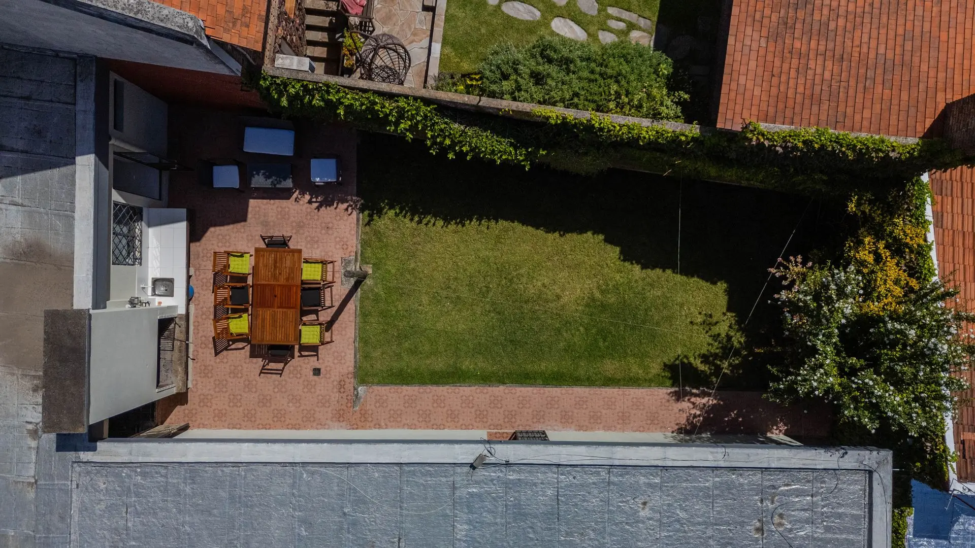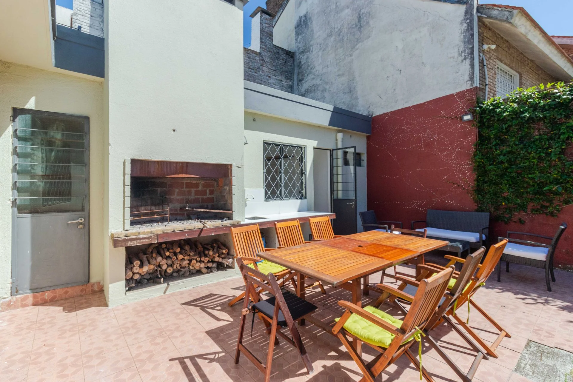 En el exterior se destaca un fondo verde con barbacoa y baño completo, ideal para reuniones y disfrute familiar.
