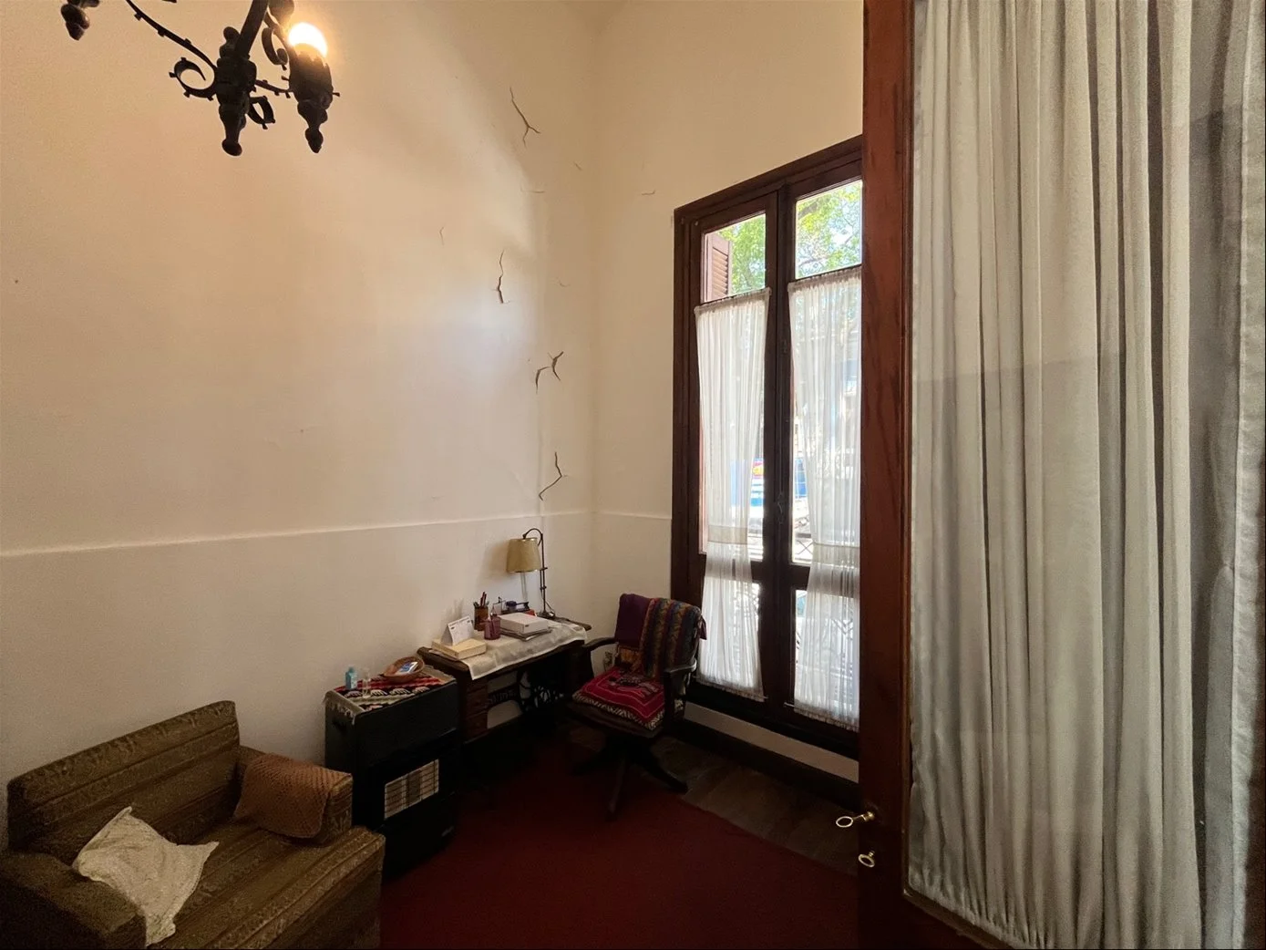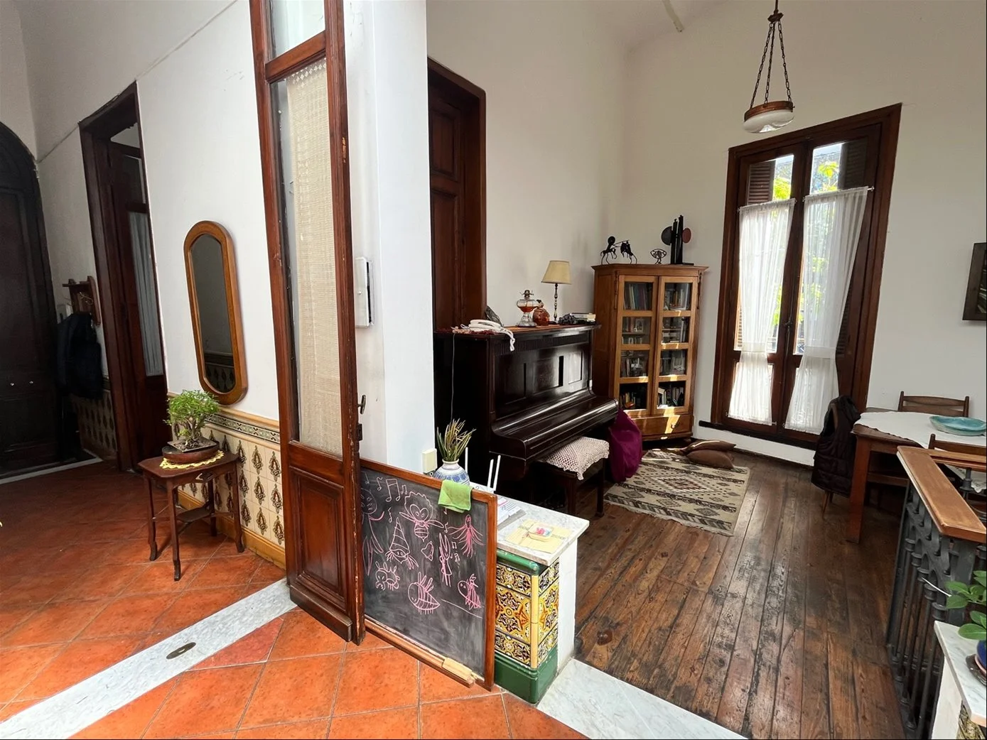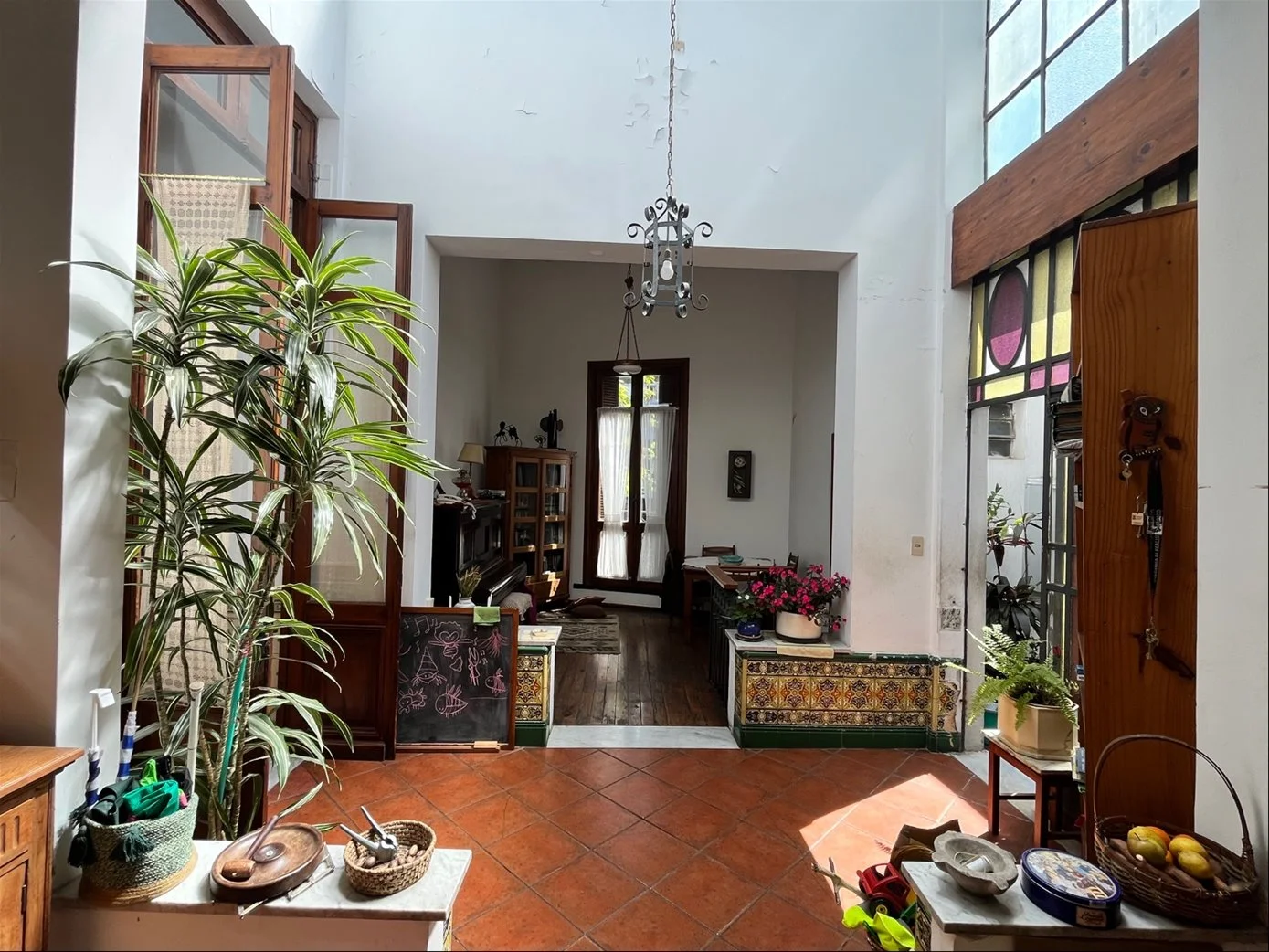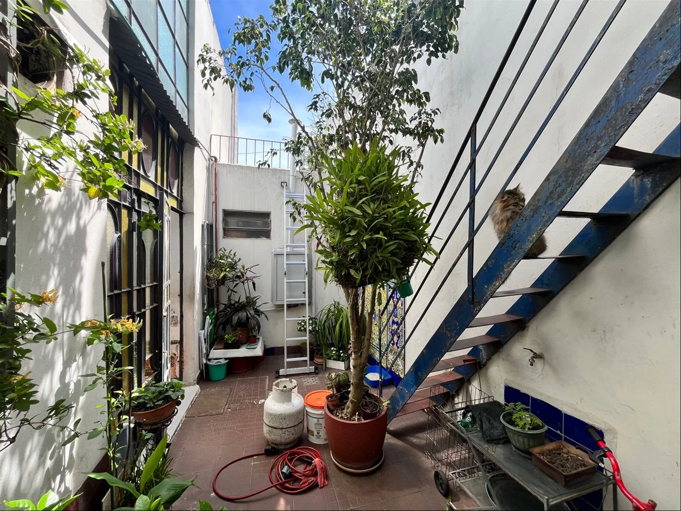 Preciosa casa ubicada en la zona de Palermo, a una cuadra de la rambla. Esta propiedad de época, en esquina, se presenta en buen estado de conservación, en una excelente ubicación, orientada al Norte y al Oeste lo que aporta mucha luz natural. En su primer nivel cuenta con un hall de recepción, un dormitorio al frente, living comedor en esquina con tres ventanales, todos con postigos, pisos de Pinotea originales, baño completo con bañera y un estar diario y cocina integrados, con claraboya, ventanas a la calle y gran abertura de hierro y vitrales hacia el patio. La cocina es amplia con muy buena capacidad de apoyo y de guardado. Patio con acceso a azotea (recién hecha a nuevo e impermeabilizada) la cual permite ampliar la casa o generar otro espacio exterior (barbacoa/pérgola, etc).