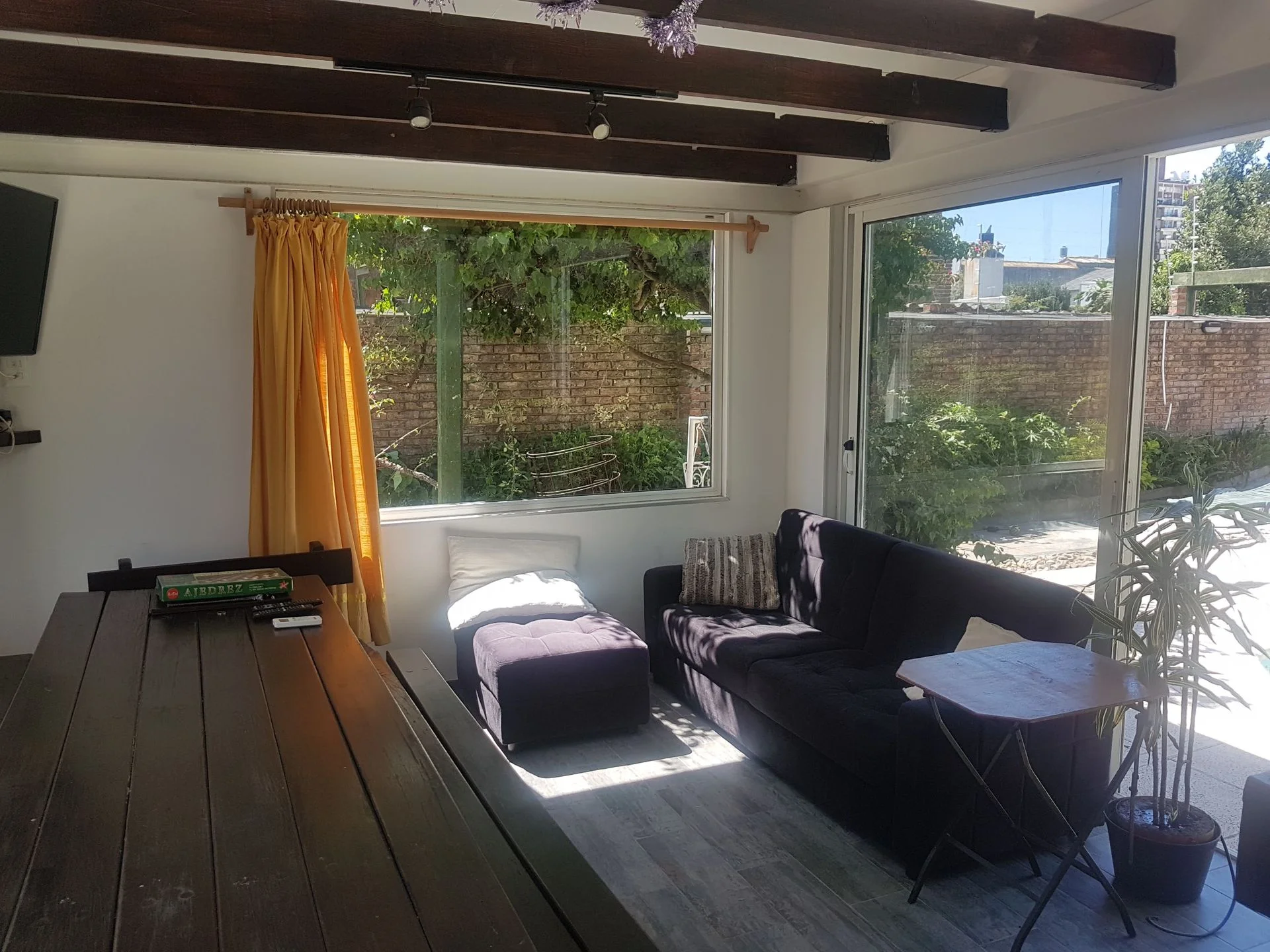 Al fondo se encuentra un monoambiente independiente con múltiples posibilidades de uso. Actualmente dispone de dormitorio, living, kitchenette y baño. Puede reciclarse como apartamento independiente, oficina, ampliar la barbacoa o integrarse al jardín generando un fondo aún más amplio.