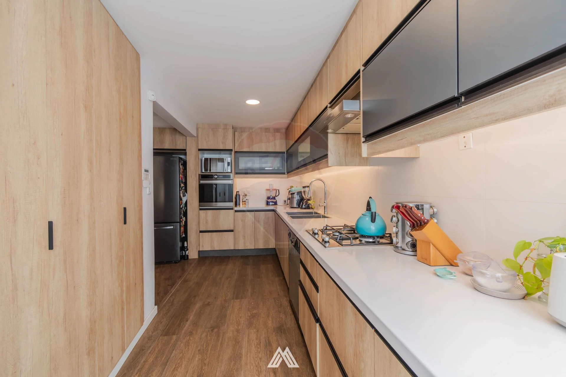 - Cocina integrada muy amplia, con profusión de placares y mesadas