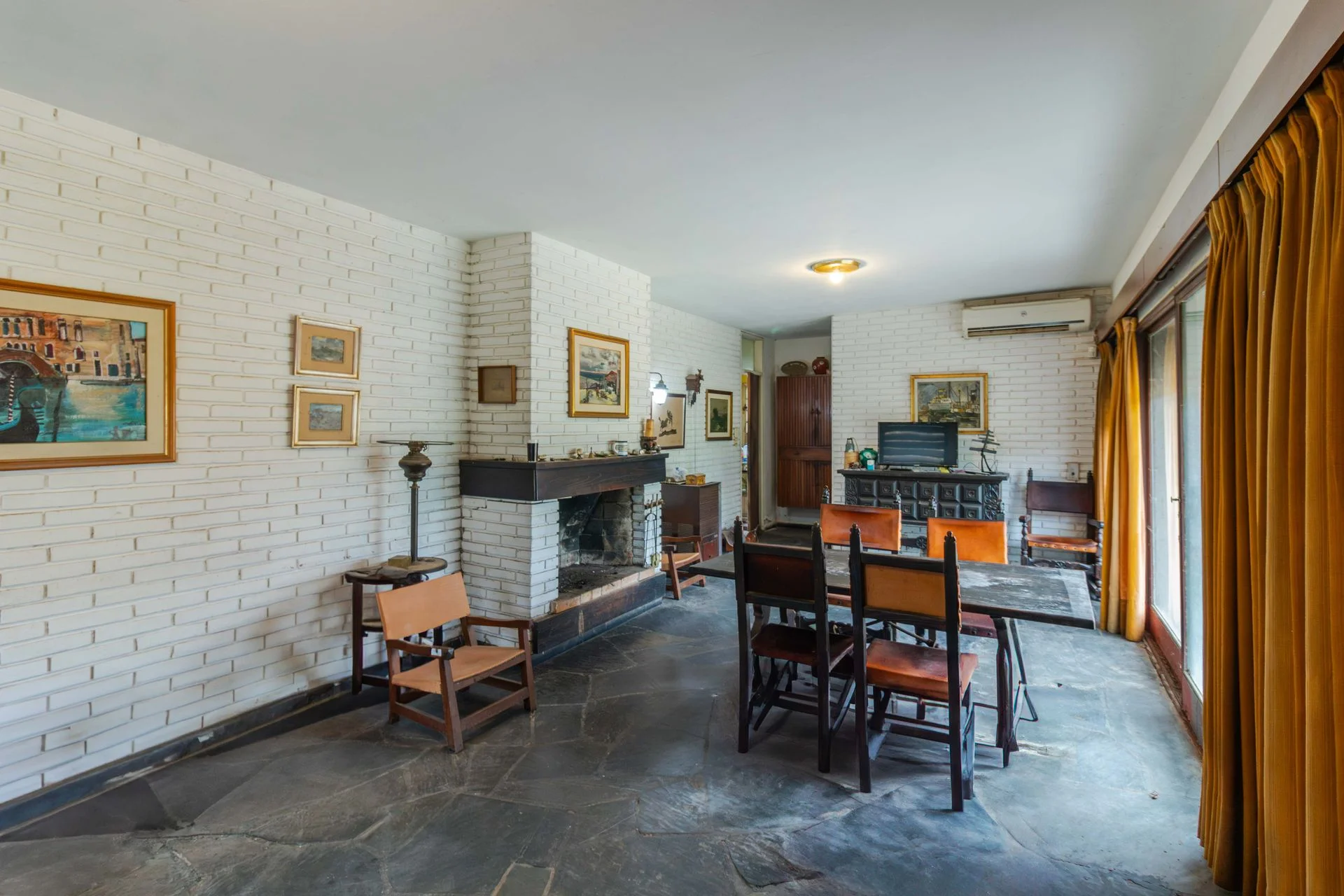 Hoy cuenta con 3 dormitorios con orientación norte, todos con ventanales hacia el jardín del frente. Un cuarto de servicio. Un gran living comedor con estufa a leña y ventanales que también comunican con el jardín del frente. Una cocina definida con salida a un patio con parrillero y un galpón de guardado. 2 baños.