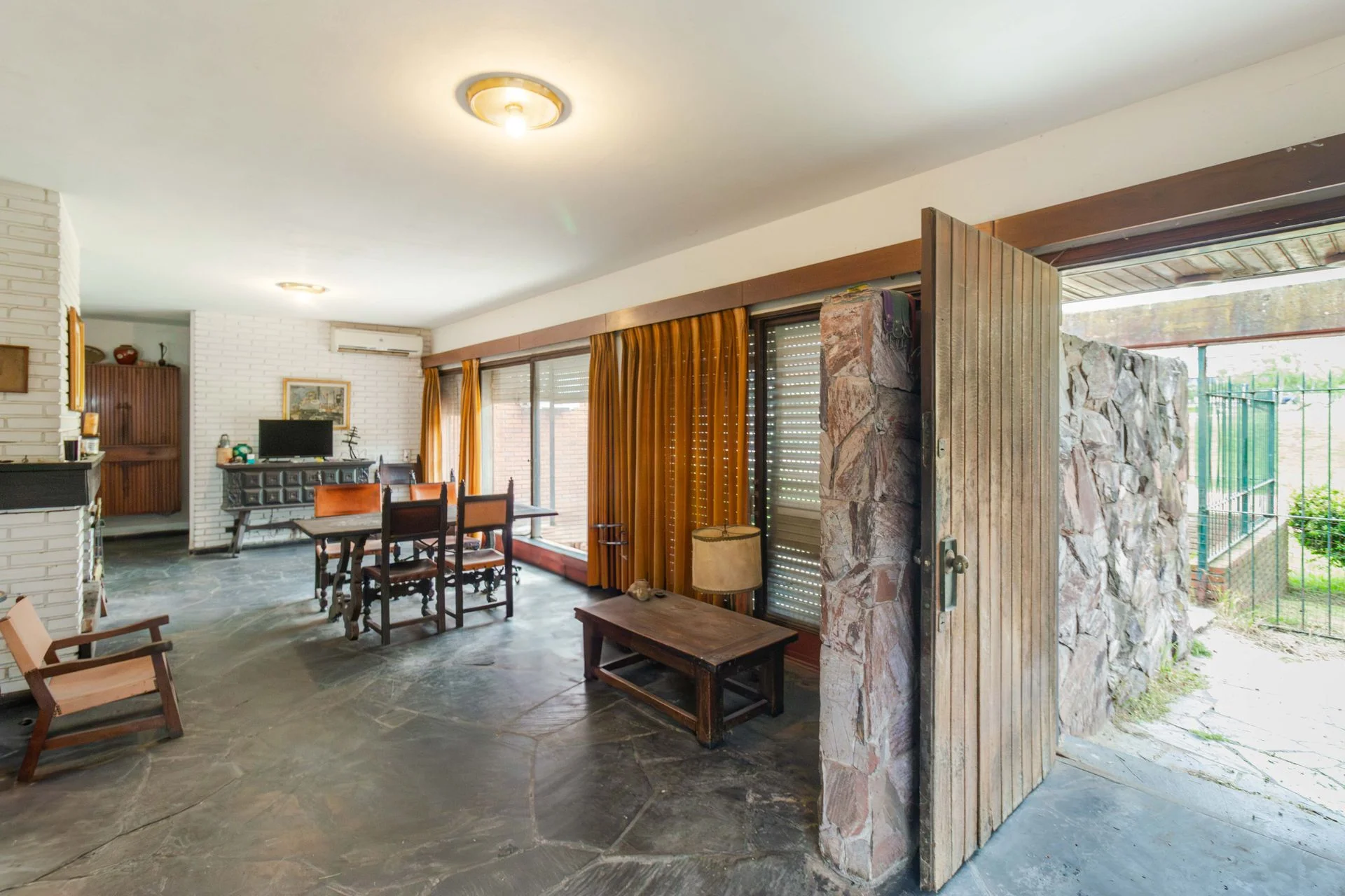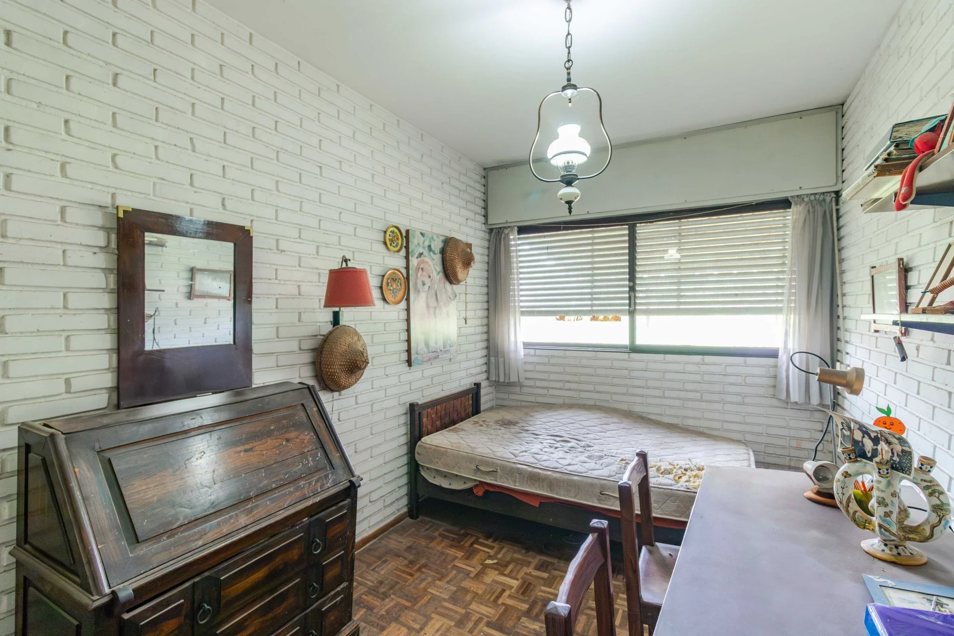 Hoy cuenta con 3 dormitorios con orientación norte, todos con ventanales hacia el jardín del frente. Un cuarto de servicio. Un gran living comedor con estufa a leña y ventanales que también comunican con el jardín del frente. Una cocina definida con salida a un patio con parrillero y un galpón de guardado. 2 baños.