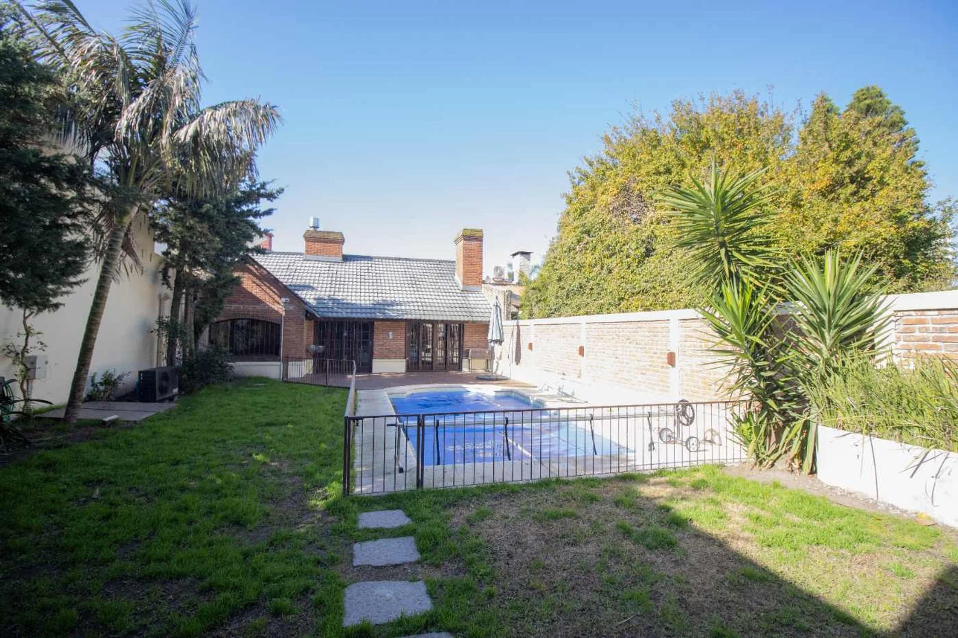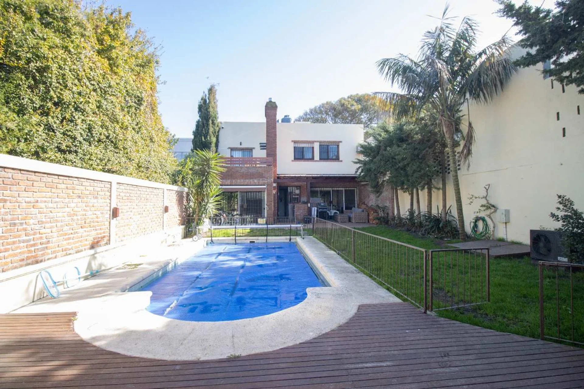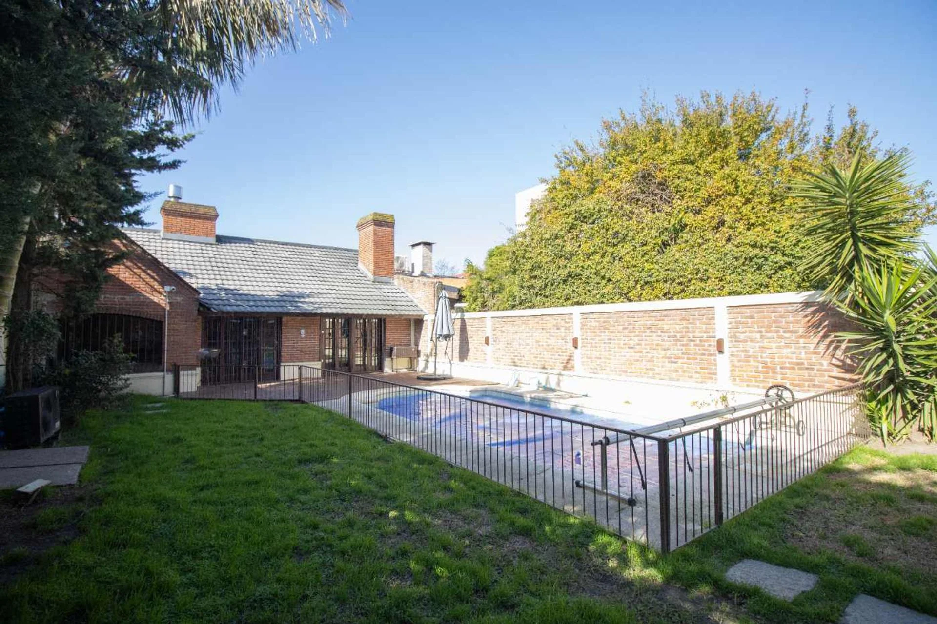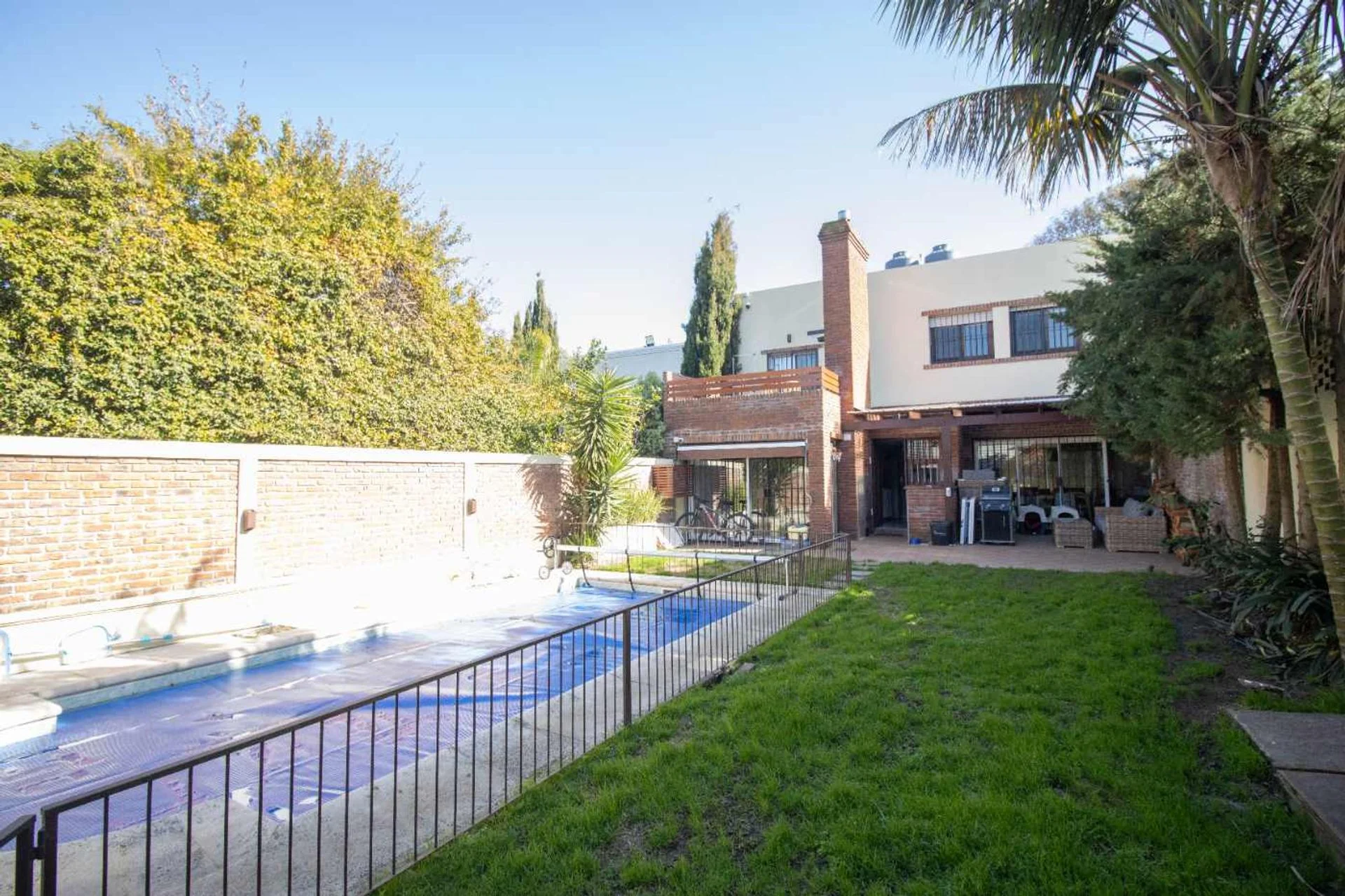 El jardín, super disfrutable, con verde, espacio semi techado ideal para armar un living exterior, una gran piscina cercada y en perfectas condiciones.