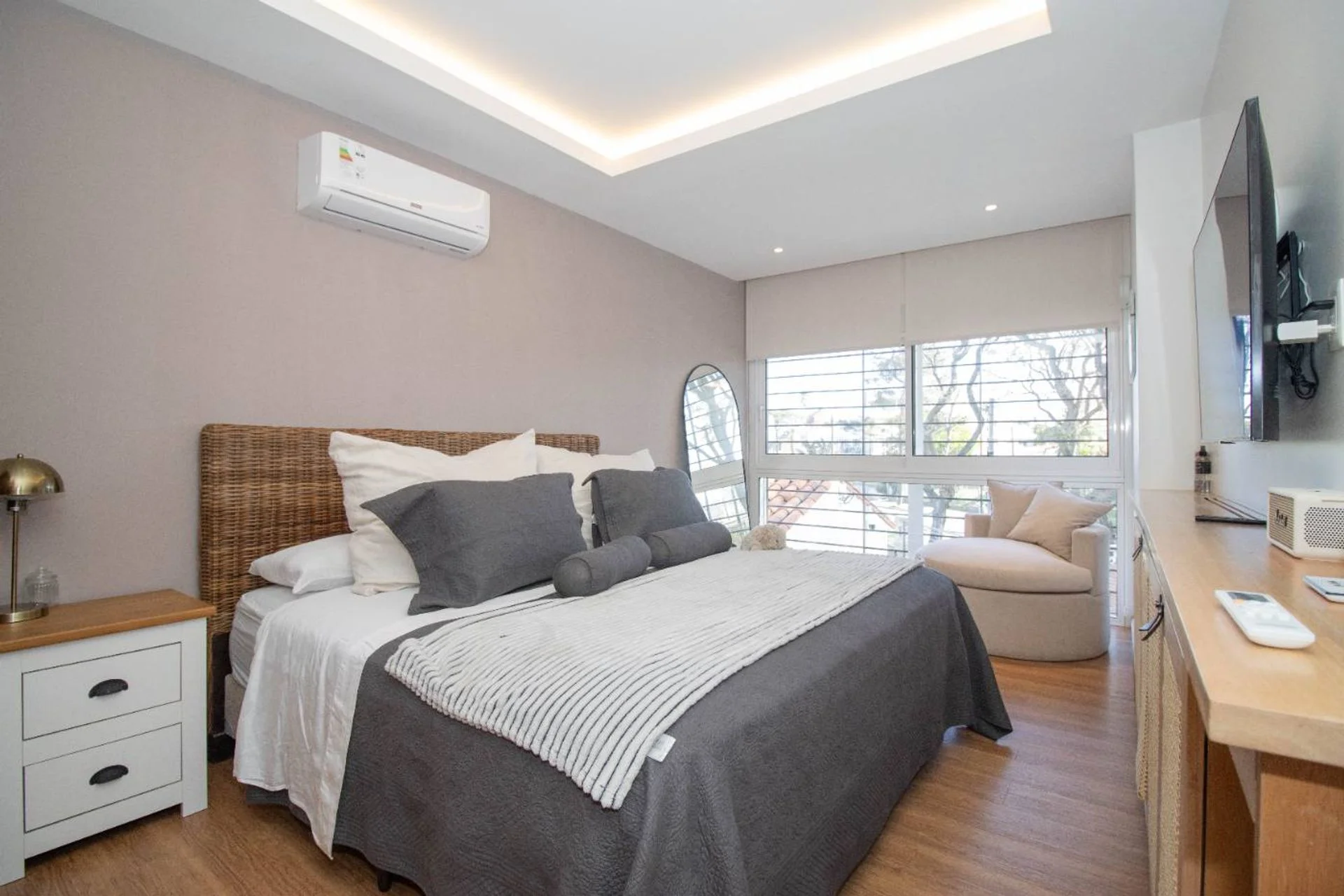 Quinto dormitorio de servicio completo, con acceso a una muy linda terraza con vista a todo el jardín. Placar empotrado.
