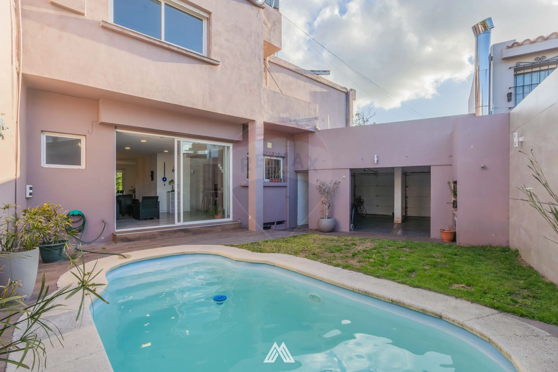 La vivienda, de estilo moderno y muy luminosa, se encuentra reciclada completamente. Cuenta con una sólida construcción de ladrillos de dos plantas, con un amplio balcón que da a la Rambla. El acceso principal se realiza por la Rambla, mientras que el acceso vehicular es por la calle Podestá.