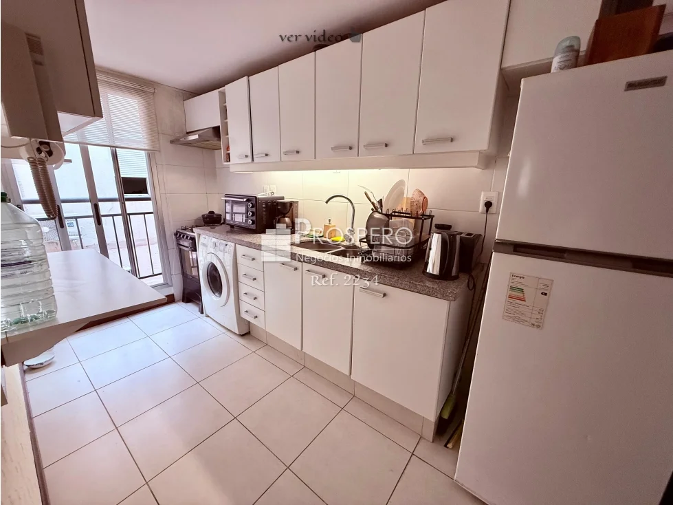 Living-comedor con aire acondicionado y muy buena luz natural, cocina definida equipada con muebles aéreos y bajo mesada.