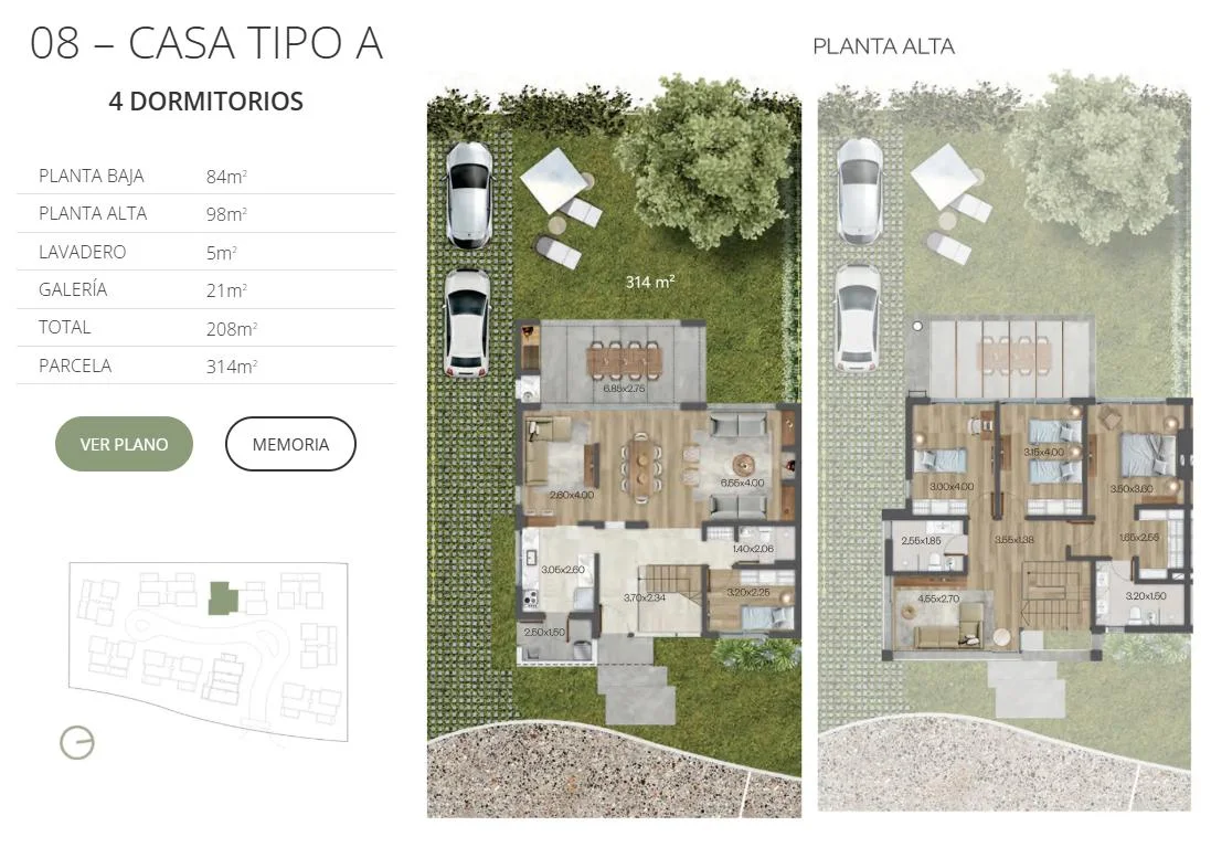 Parcelas: Varían entre 231m² y 354m²