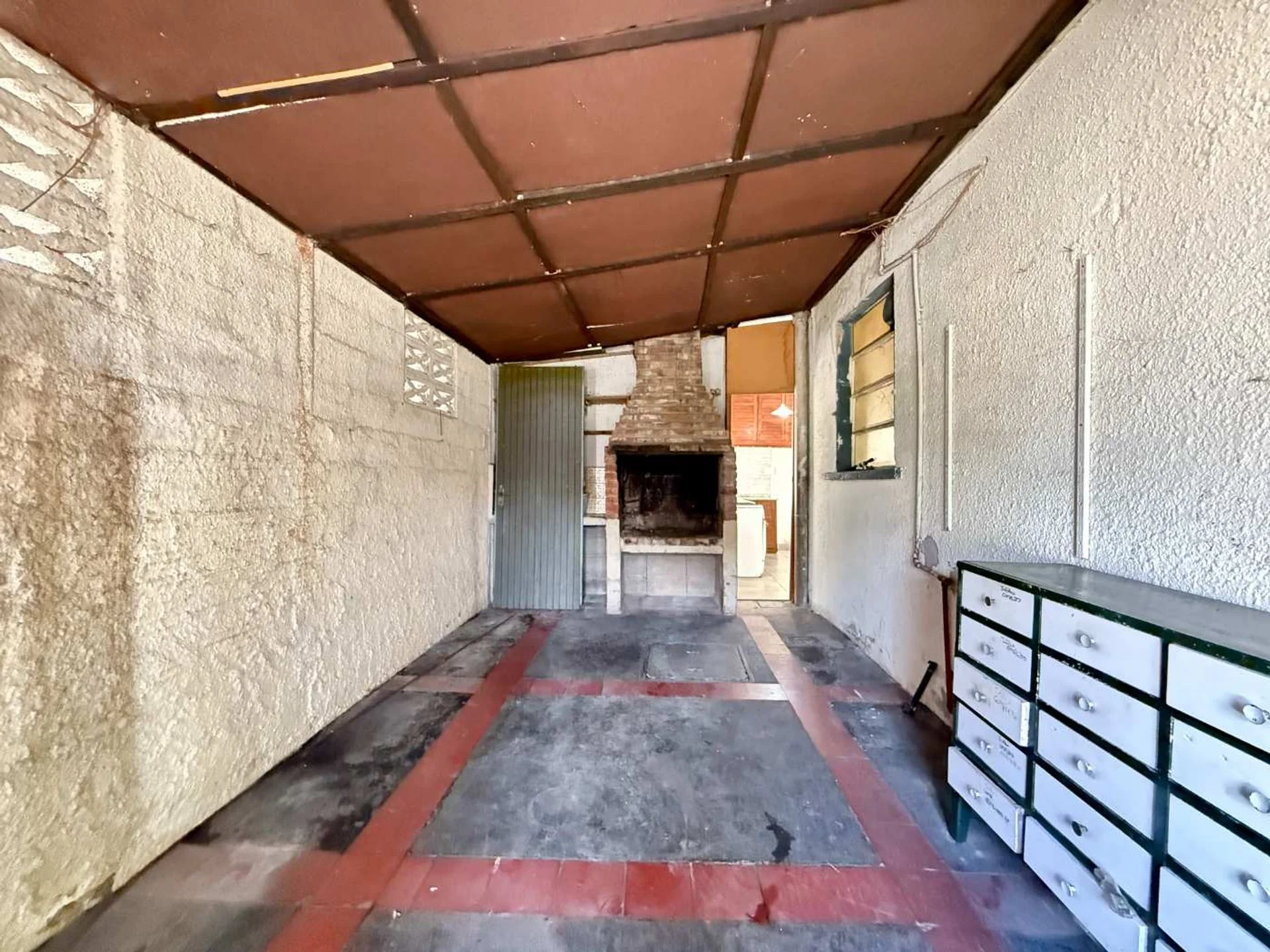 Parrillero cubierto integrado a la vivienda donde cumple una doble funcionalidad, como garage y barbacoa.