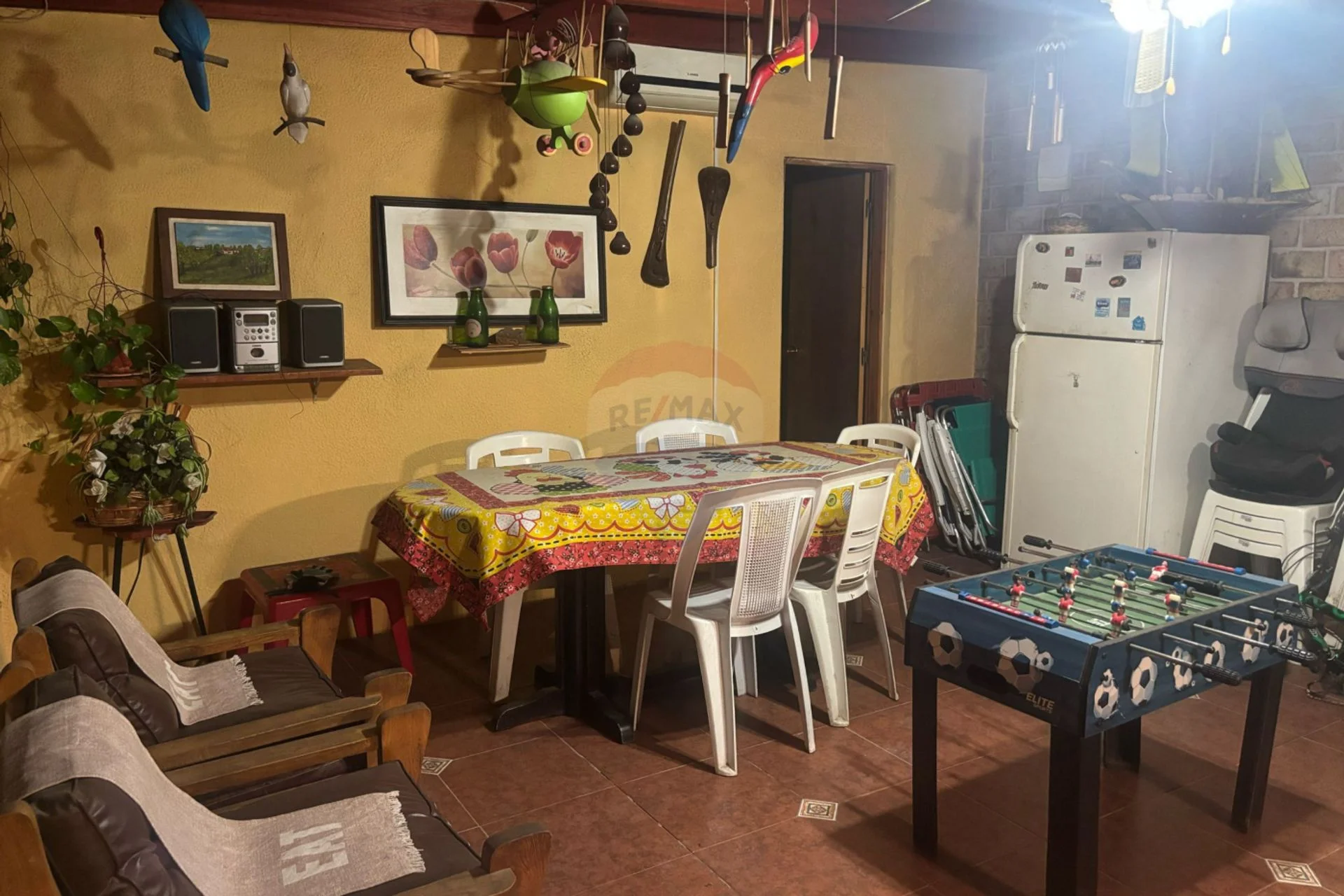 El exterior ofrece un jardín frontal cuidado, garaje para 2 vehículos con portón automatizado de madera y una barbacoa cerrada de 62 m² ideal para reuniones sociales. Adicional galpón para almacenamiento de herramientas y leña.