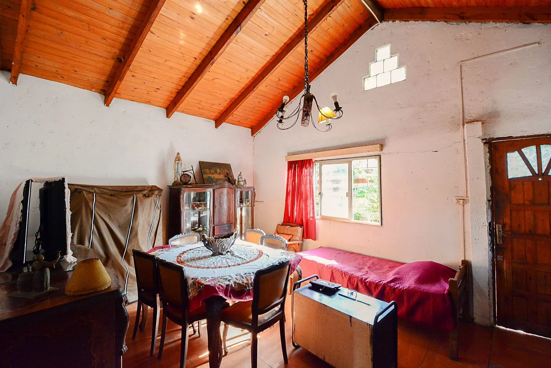 La propiedad cuenta con una cerca perimetral y un portón de acceso. La entrada principal da acceso a un comedor de generosas dimensiones, techado a dos aguas.