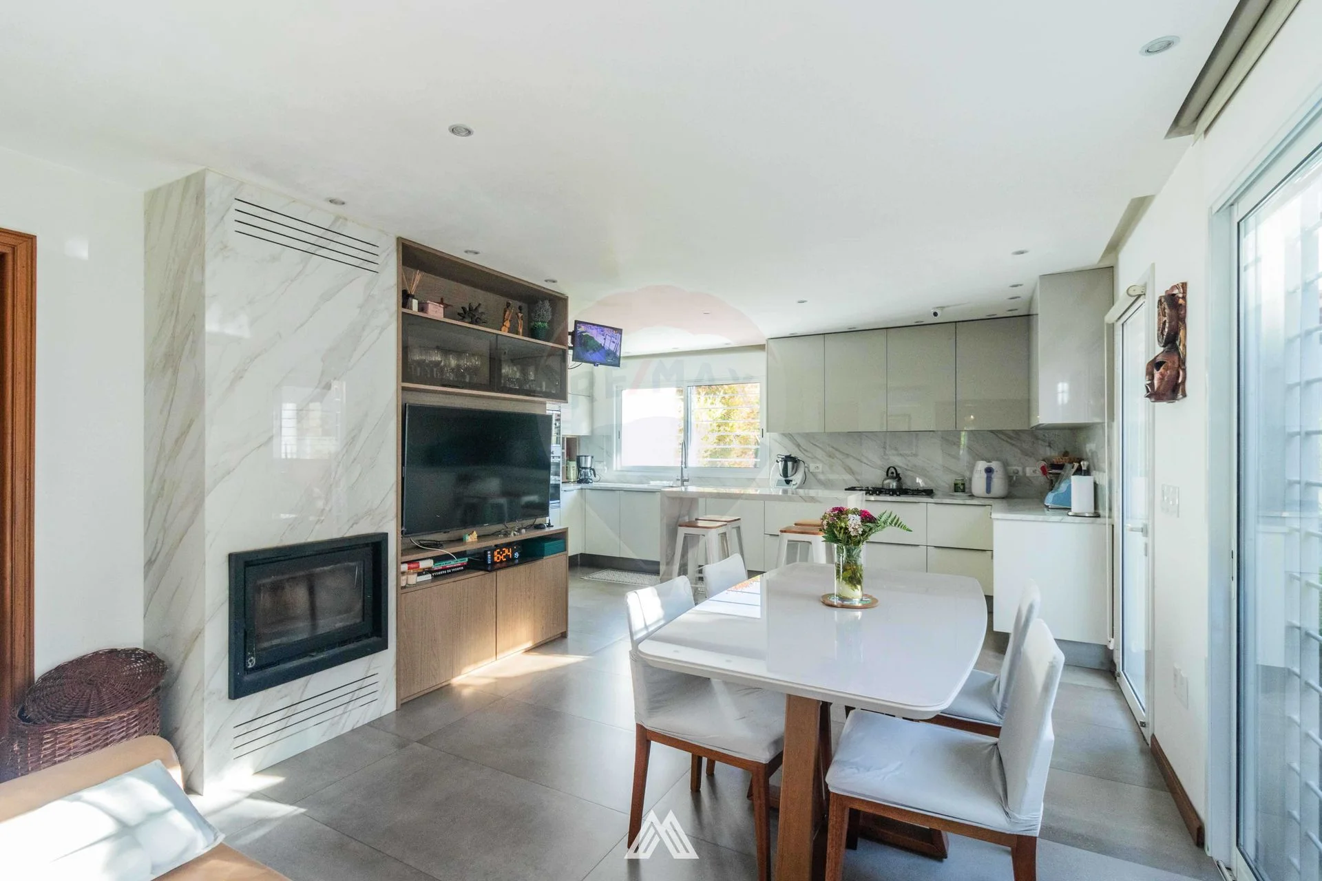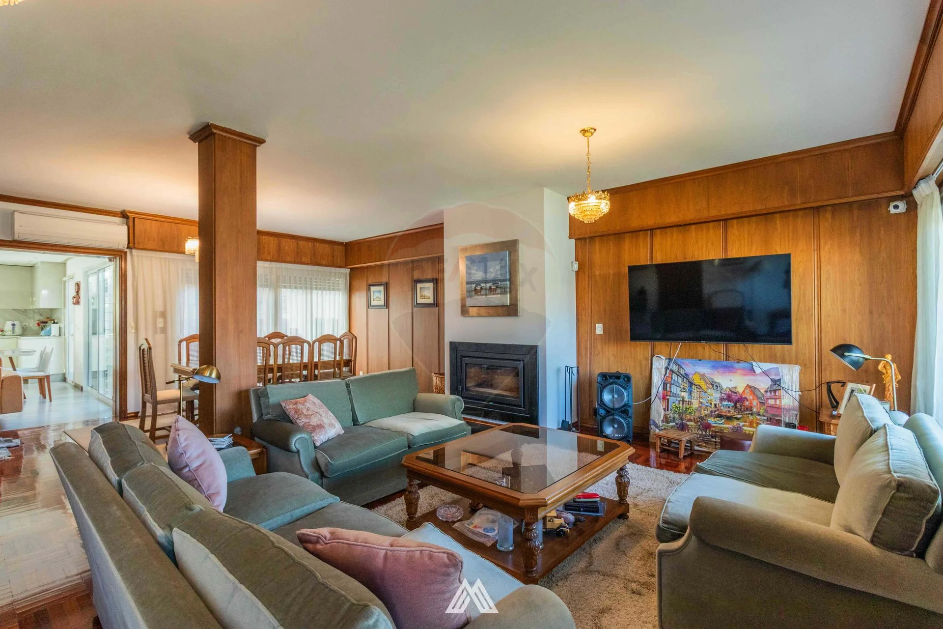 que nos conduce por un lado hacia un gran living comedor, con revestimiento de madera,