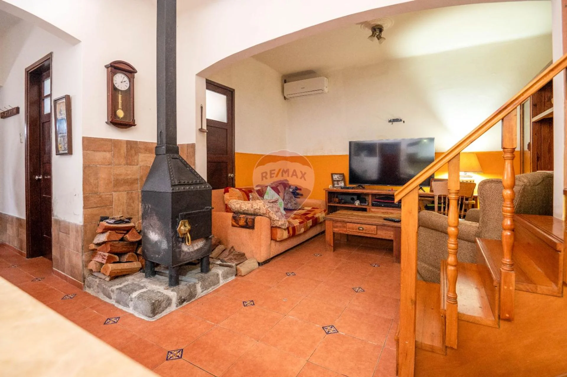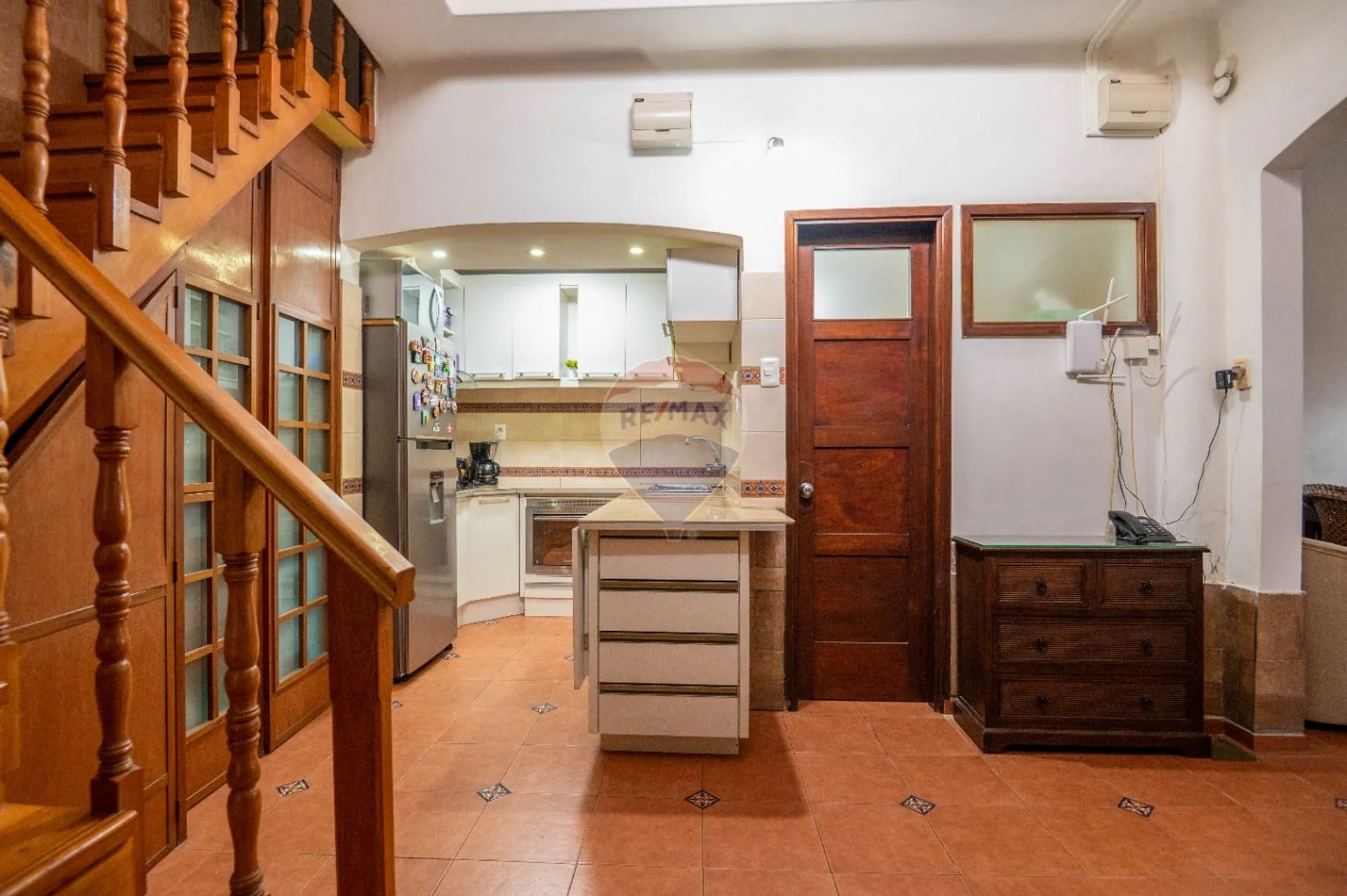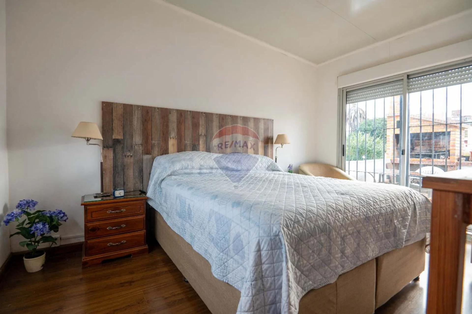 En planta baja encontramos un área de living comedor con estufa a leña, cocina semi-definida equipada con anafe, horno empotrado, campana y muebles aéreos y bajo mesada; un baño completo y uno de los dormitorios orientado al frente. La casa cuenta con garage (hoy es un ambiente integrado a la casa y utilizado como comedor) pero conserva el portón de hierro y madera, sistema basculante con automatismo para apertura y cierre.
