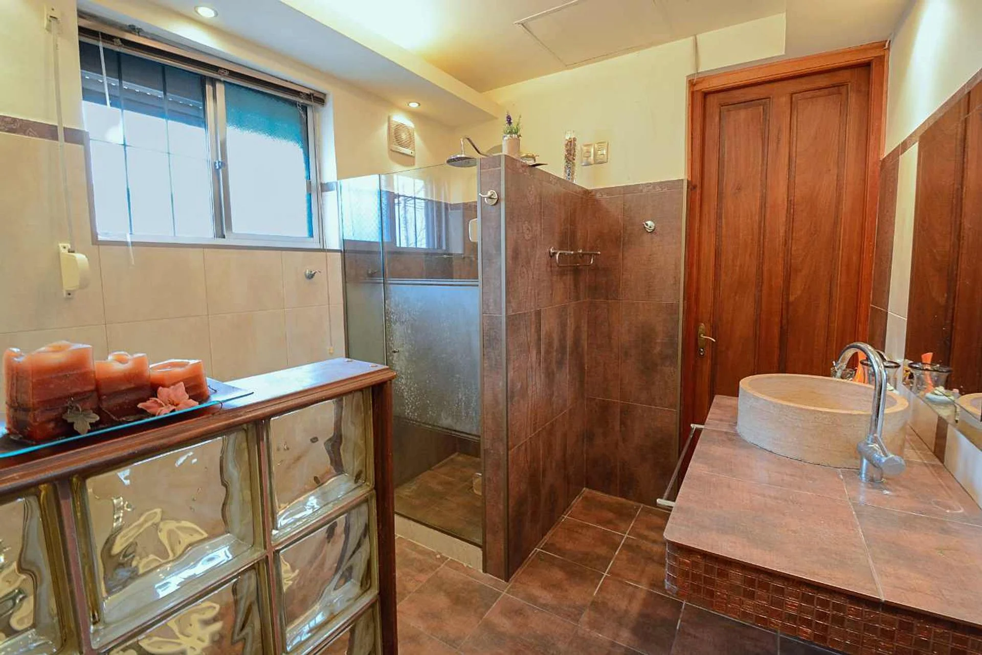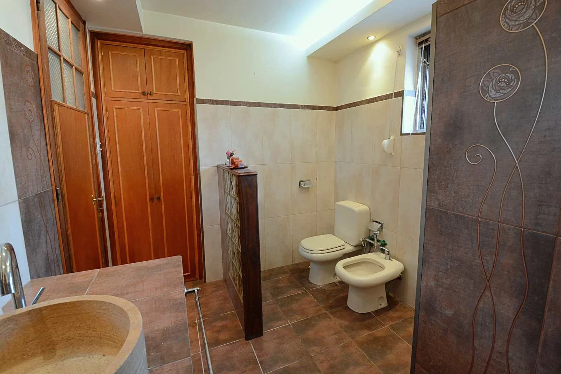 El baño modernizado ha sido renovado con gusto, sin perder la armonía con el estilo de la casa.