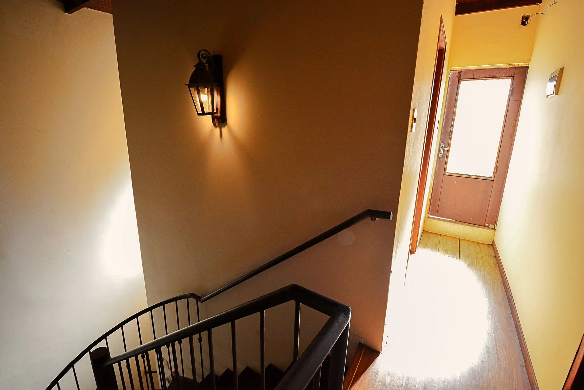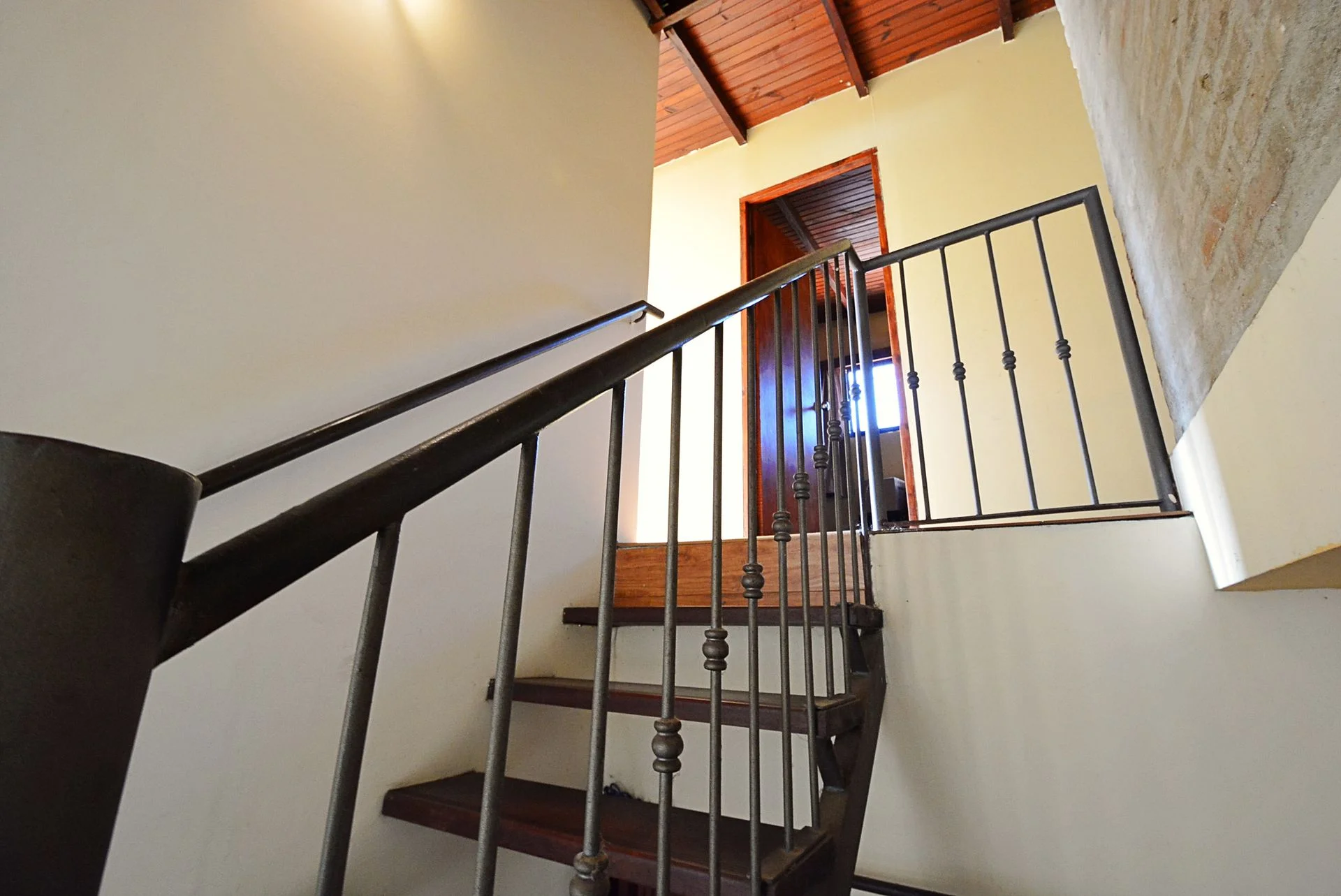 En esta área se encuentra la elegante escalera en hierro que nos lleva al segundo nivel de la casa.