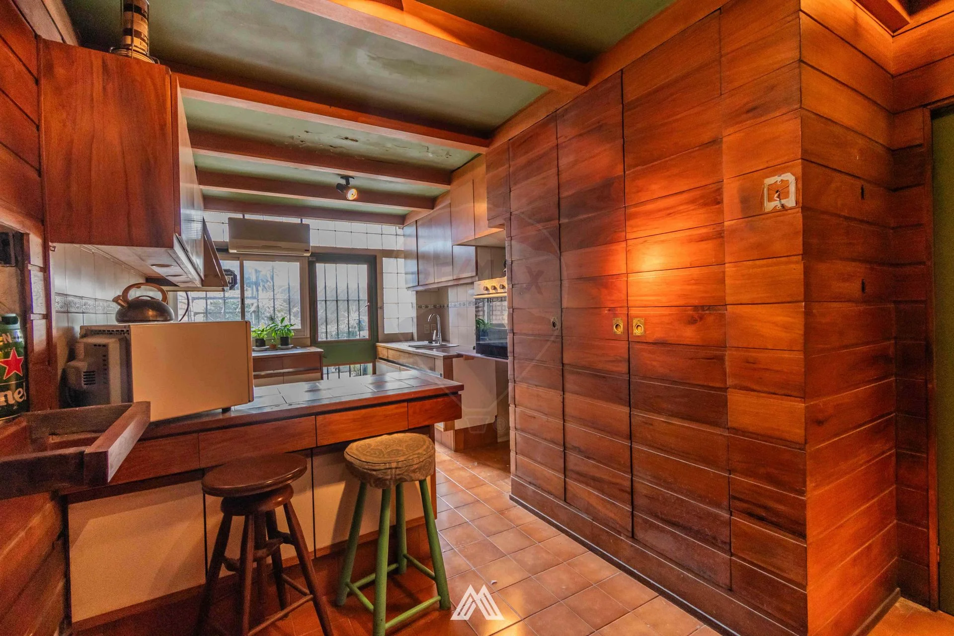 Doble circulación desde living a cocina, toilette. La cocina es un gran ambiente con comedor o desayunador. Mesadas de madera y cerámica. Muebles de madera sobre y bajo mesada. Alacena de guardado. Salida al fondo desde la cocina, mesada exterior con lugar de guardado.