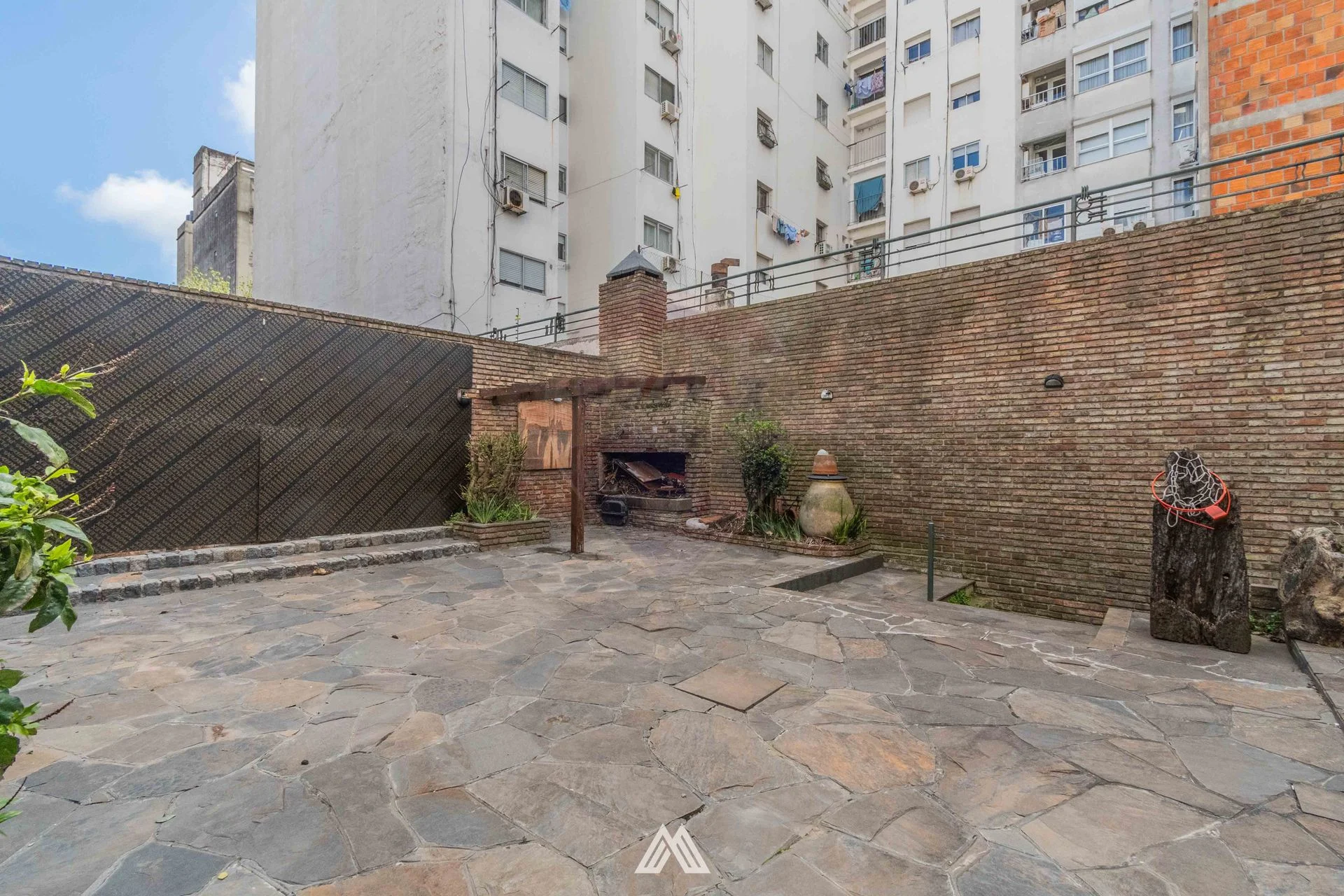 El fondo cuenta con parrillero, piso de lajota y jardineras.