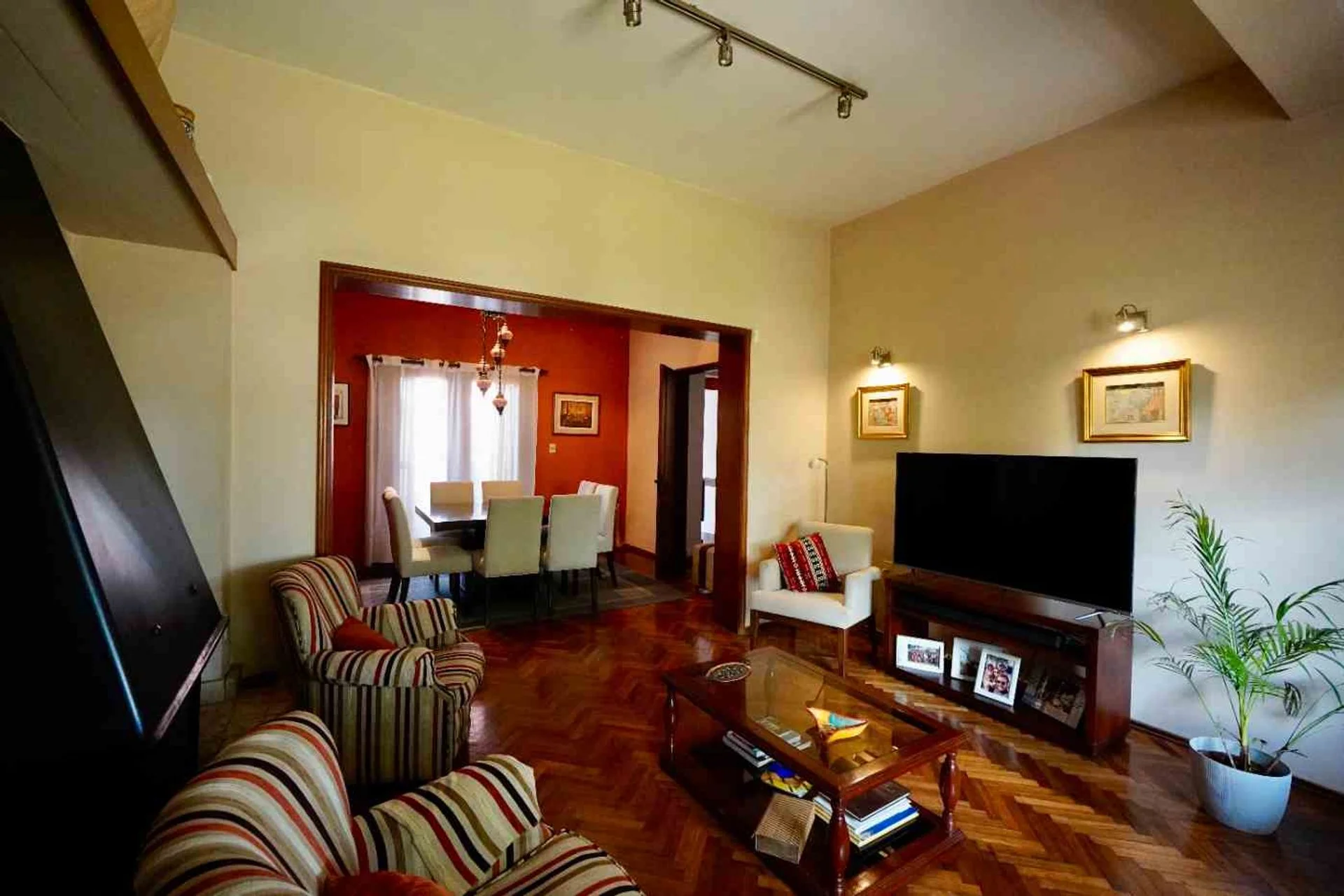 Accedemos por la puerta principal, en donde a la izquierda llegamos a un amplio y cálido living comedor,