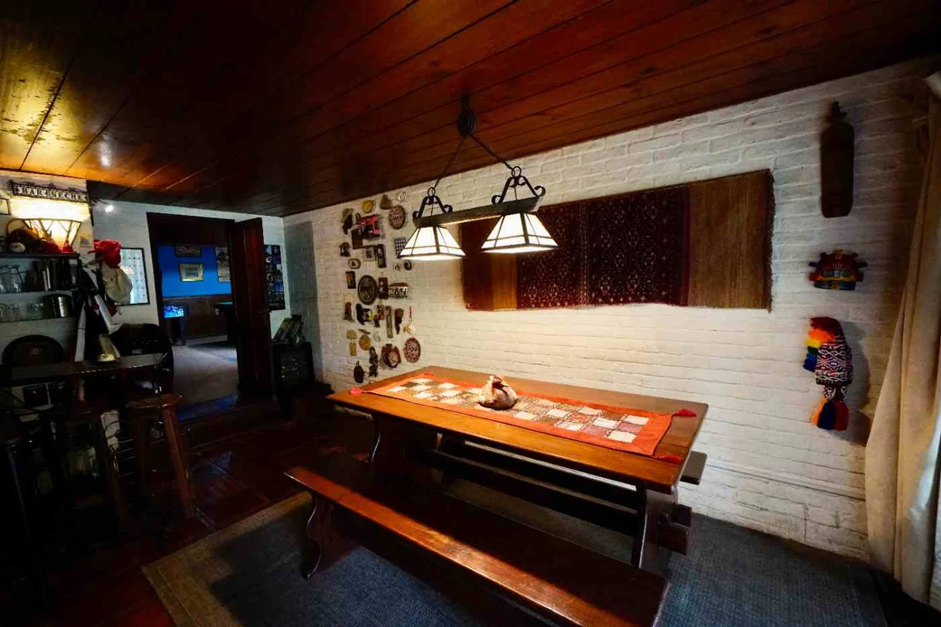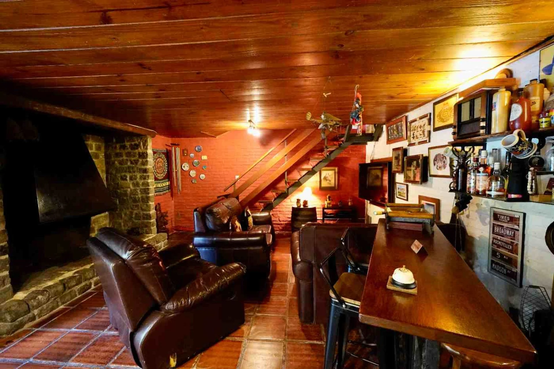 El espacio exterior se completa con una barbacoa de gran tamaño, equipada con living con estufa a leña, zona de juegos (mesa de pool y flipper), y gran depósito de guardado.
